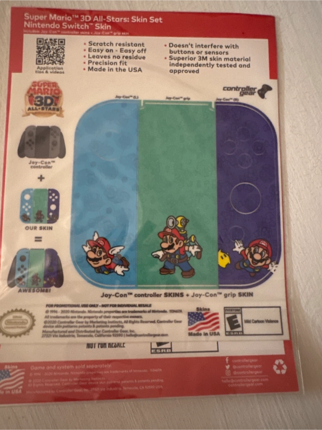 Selling a Super Mario 3D All-Stars skin set for the Nintendo Switch! It's scratch-resistant, easy to apply, and leaves no residue. It's also made in the USA! This set includes skins for the Joy-Con controllers and a grip skin.