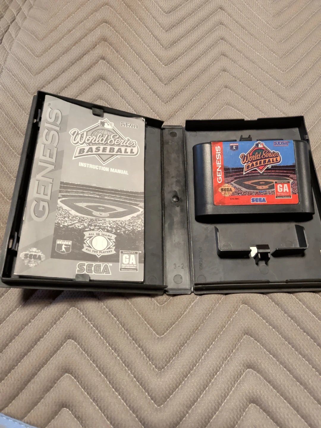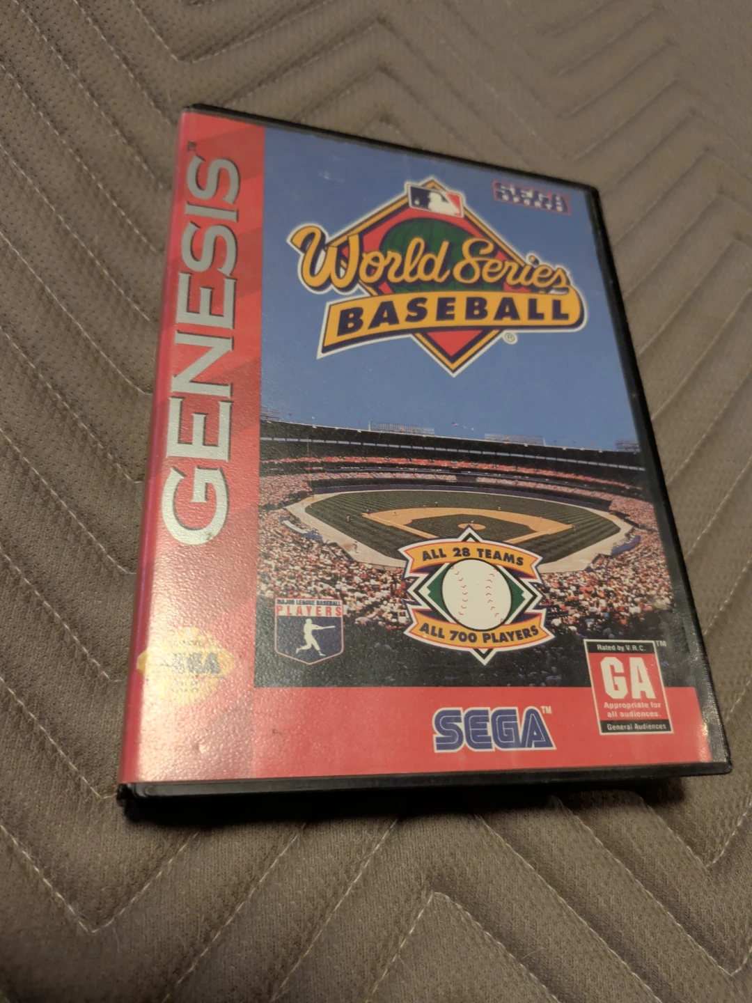 World Series Baseball for the Sega Genesis. Includes the game cartridge, original case, and instruction manual. Features all 28 teams and all 700 players. A fun baseball game for retro gaming fans!