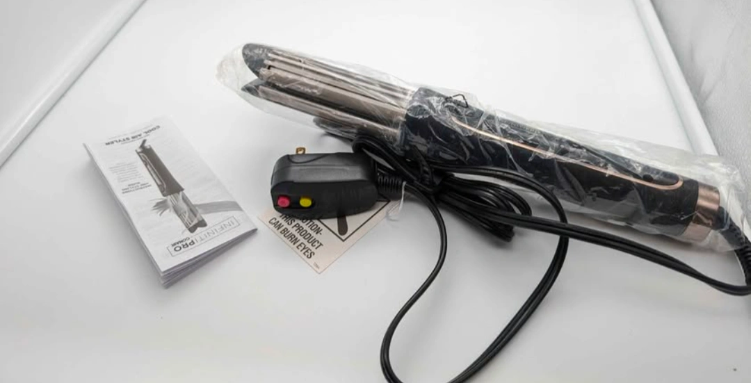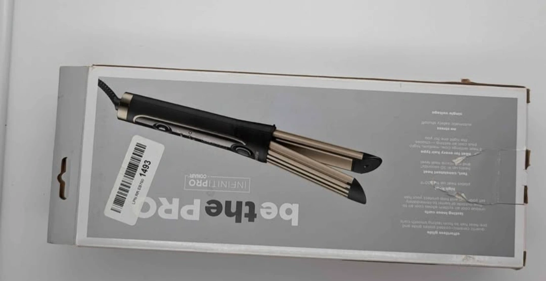New, in box. Large barrel. Creates loose curls. Set and protect. Cool air system. Includes instruction manual and power adapter.