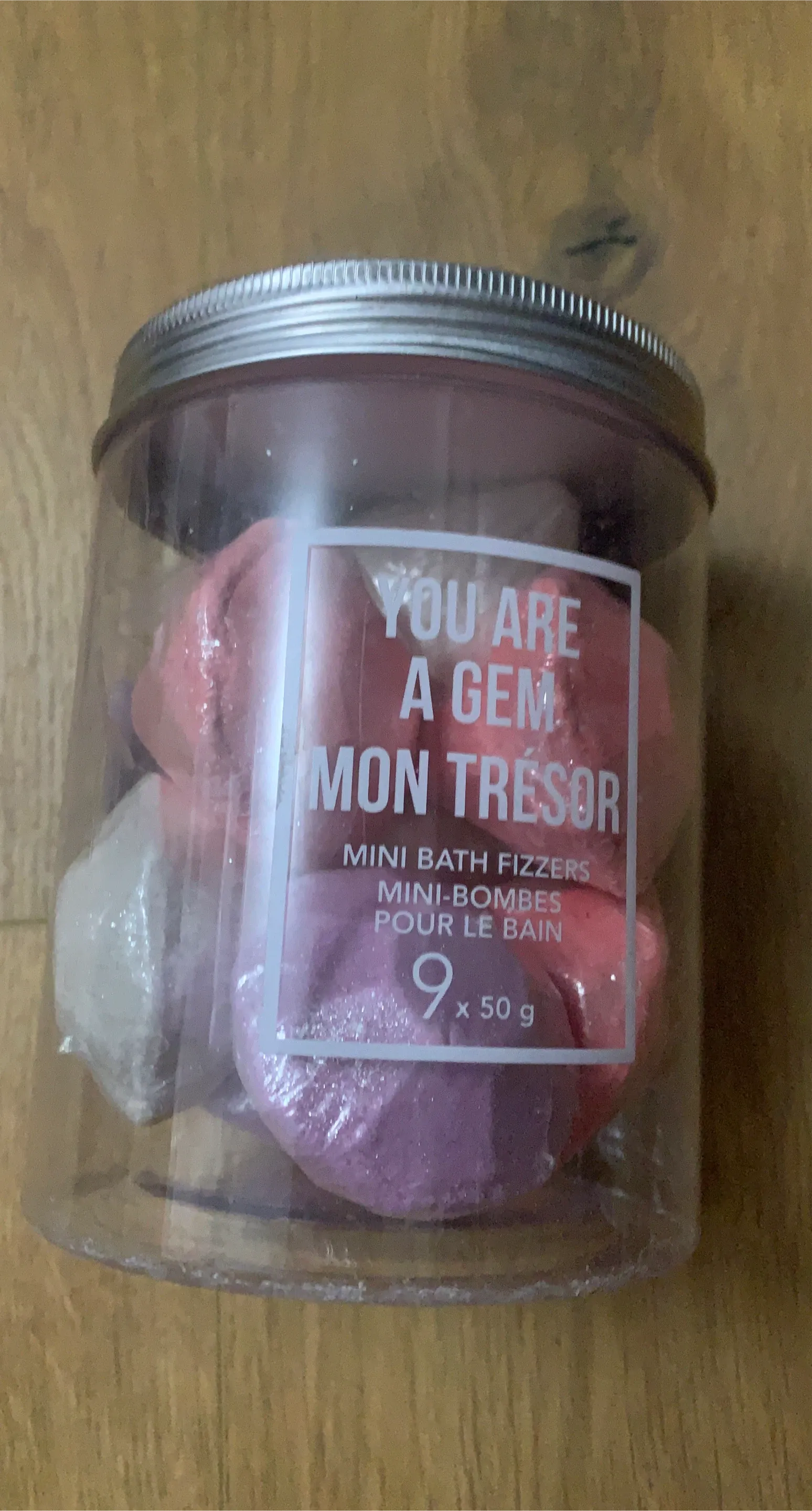 This set includes 9 mini bath fizzers, with each one weighing 50g. They're designed to add a lovely scent and colour to your bath. The fizzers come in a reusable jar.