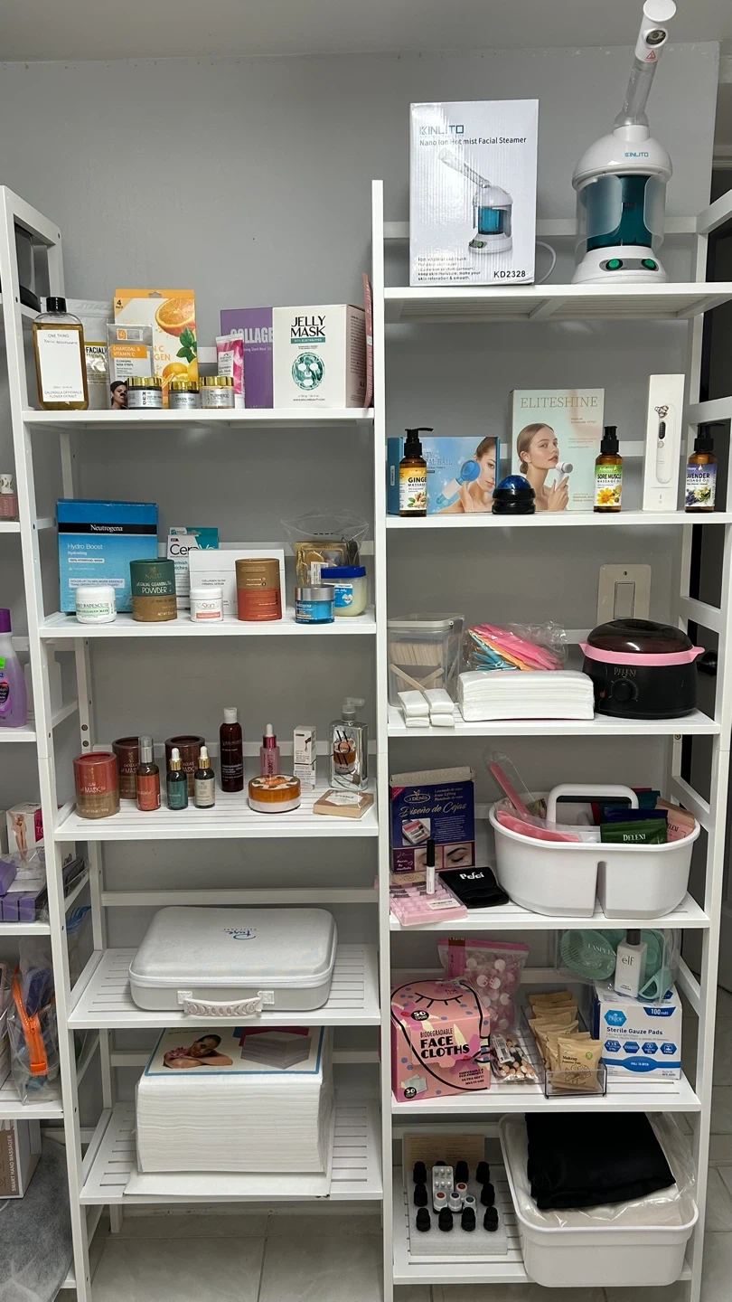 A variety of beauty and spa items including skincare products, masks, nail supplies, and facial tools are available. Items range from lotions and serums to nail polishes and treatment accessories. These supplies are useful for professional salons or personal at-home pampering routines.