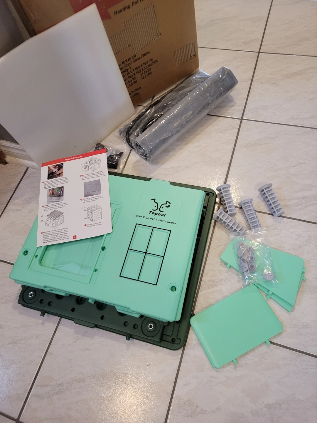 Large plastic heated cat house for outdoor use. It's 100% weatherproof and insulated with a safe escape door. Dimensions are 21.6"x17"x17.5". The double-layer structure provides better warmth.
