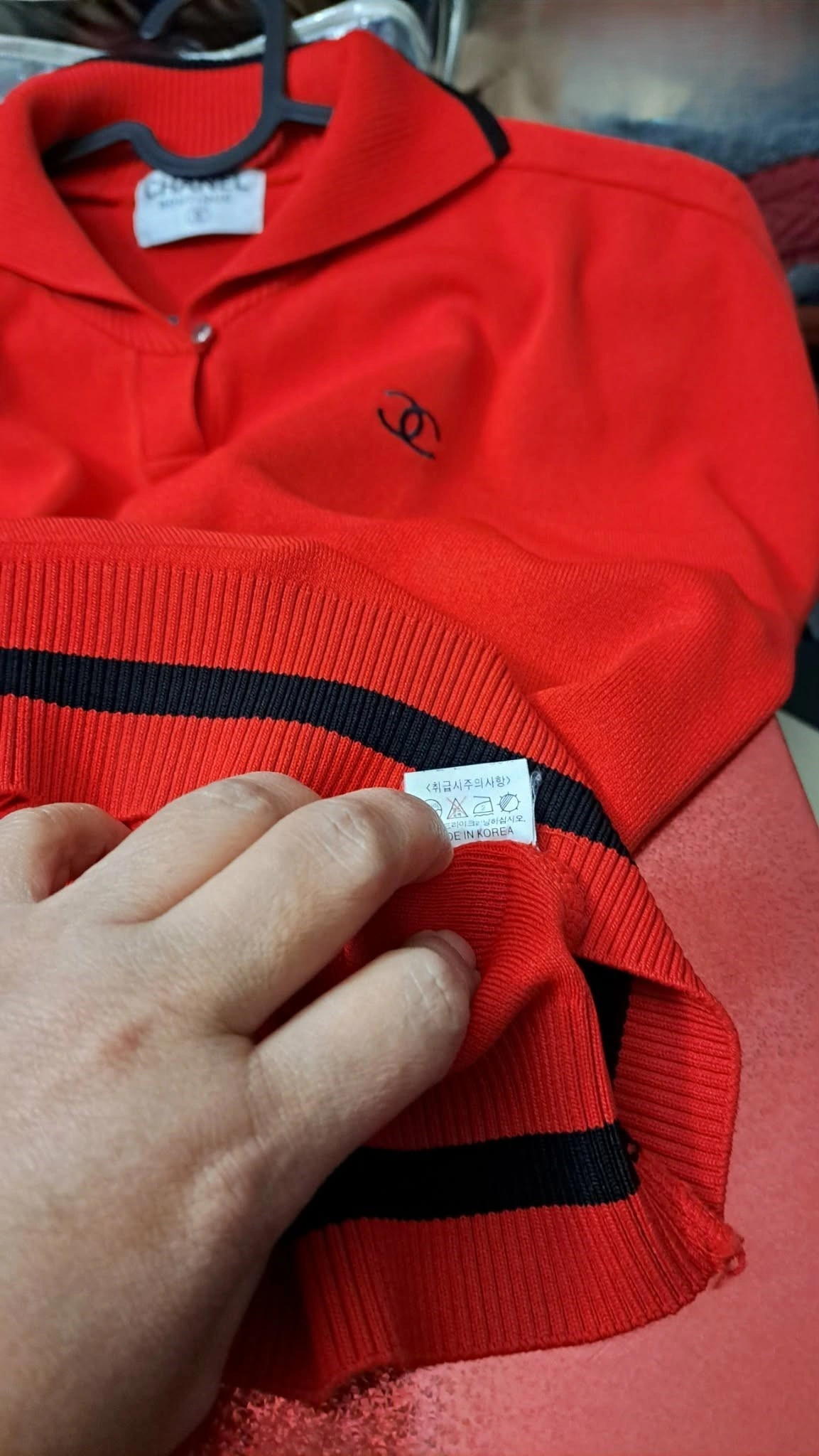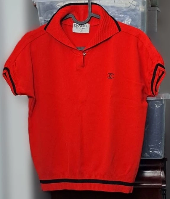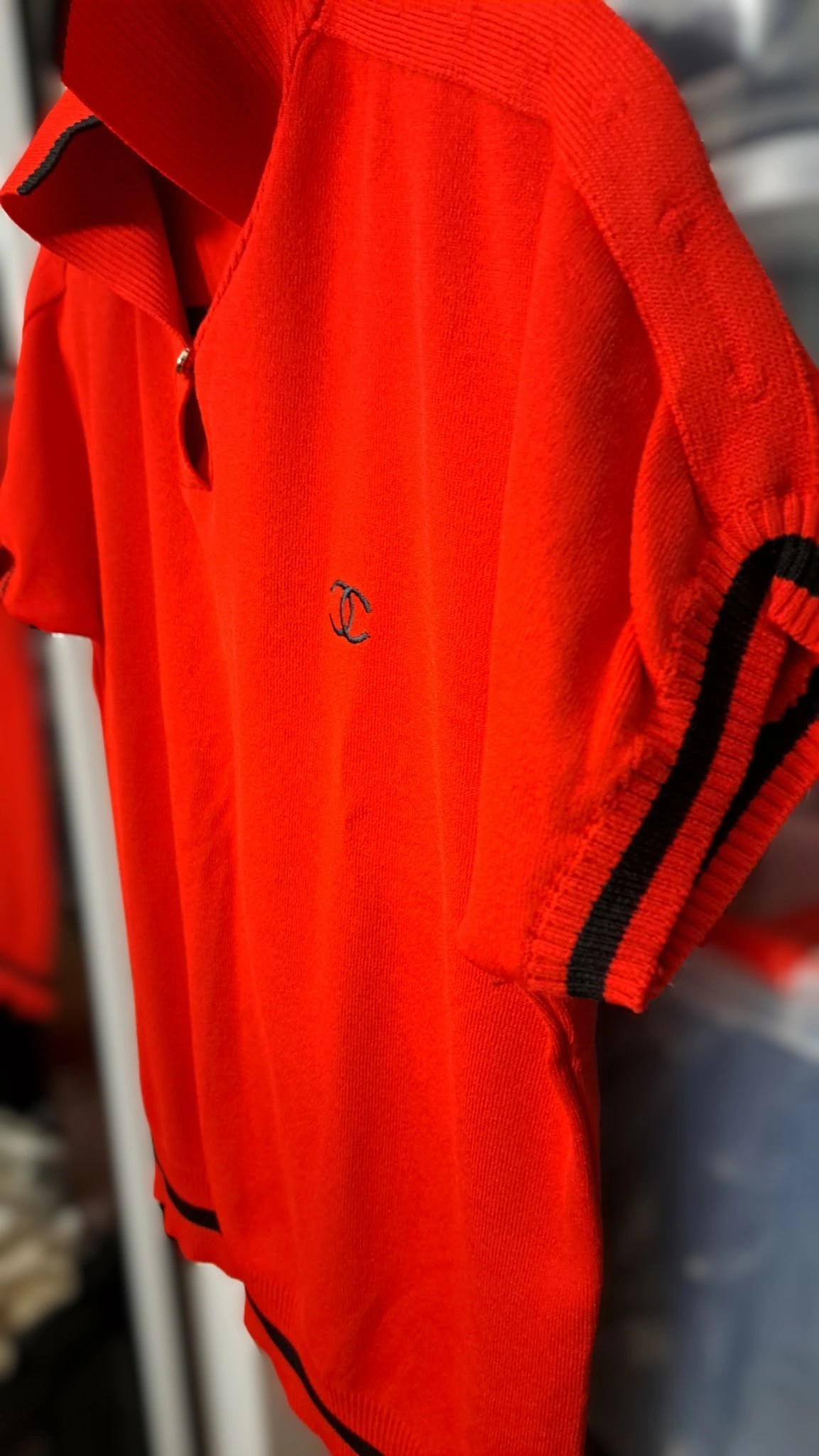 Iconic Branding: Embroidered Interlocking CC logo on the chest.