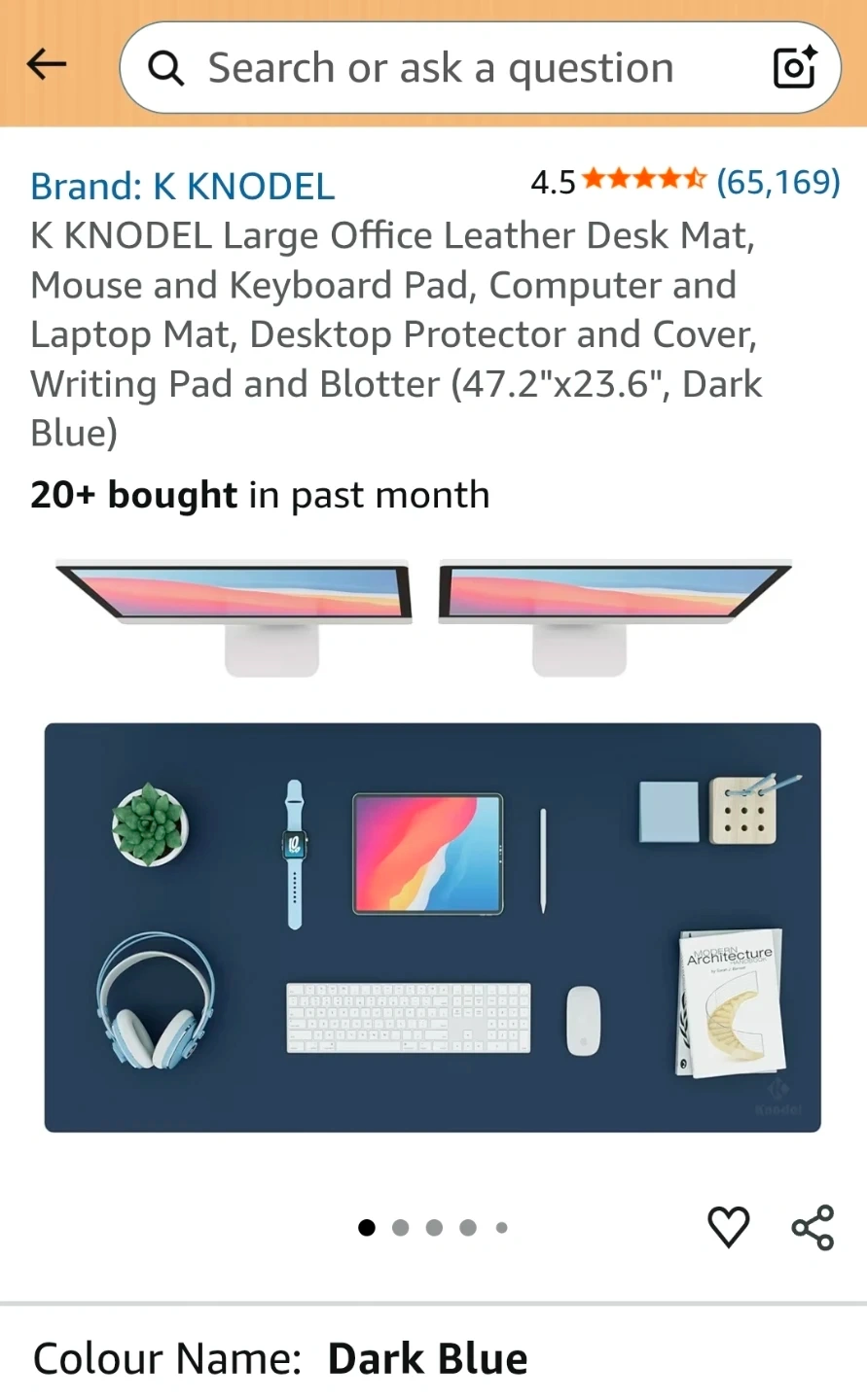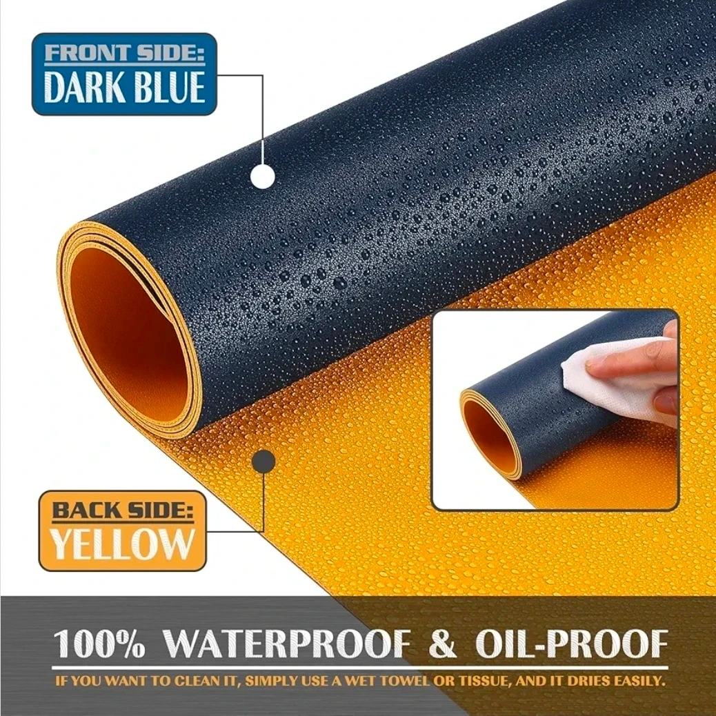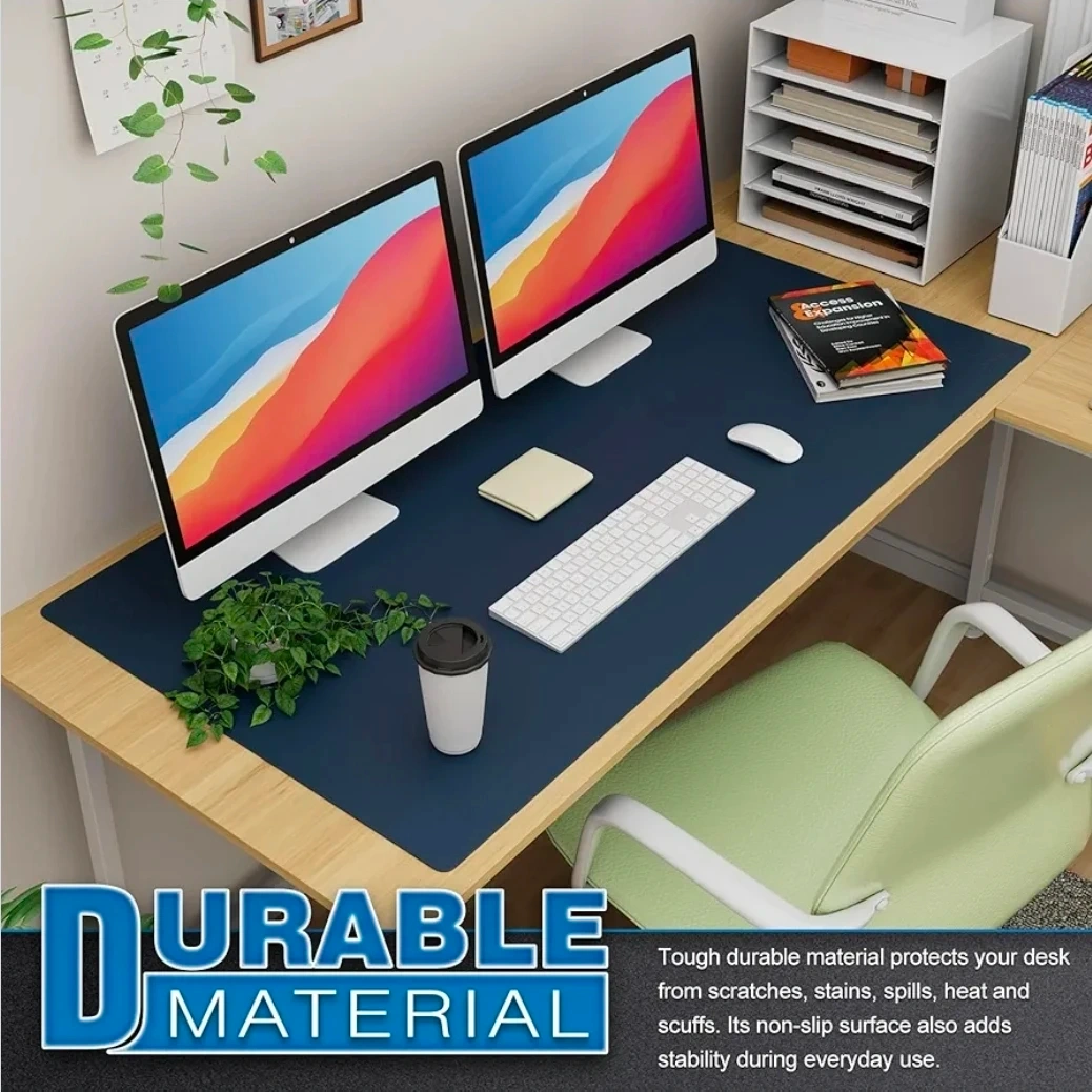This K Knodel desk mat is made of durable, waterproof, and oil-proof leather. It's large at 47.2"x23.6" and comes in dark blue with a yellow backing. Protect your desk from scratches, spills, heat, and scuffs while using it as a mouse or writing pad.