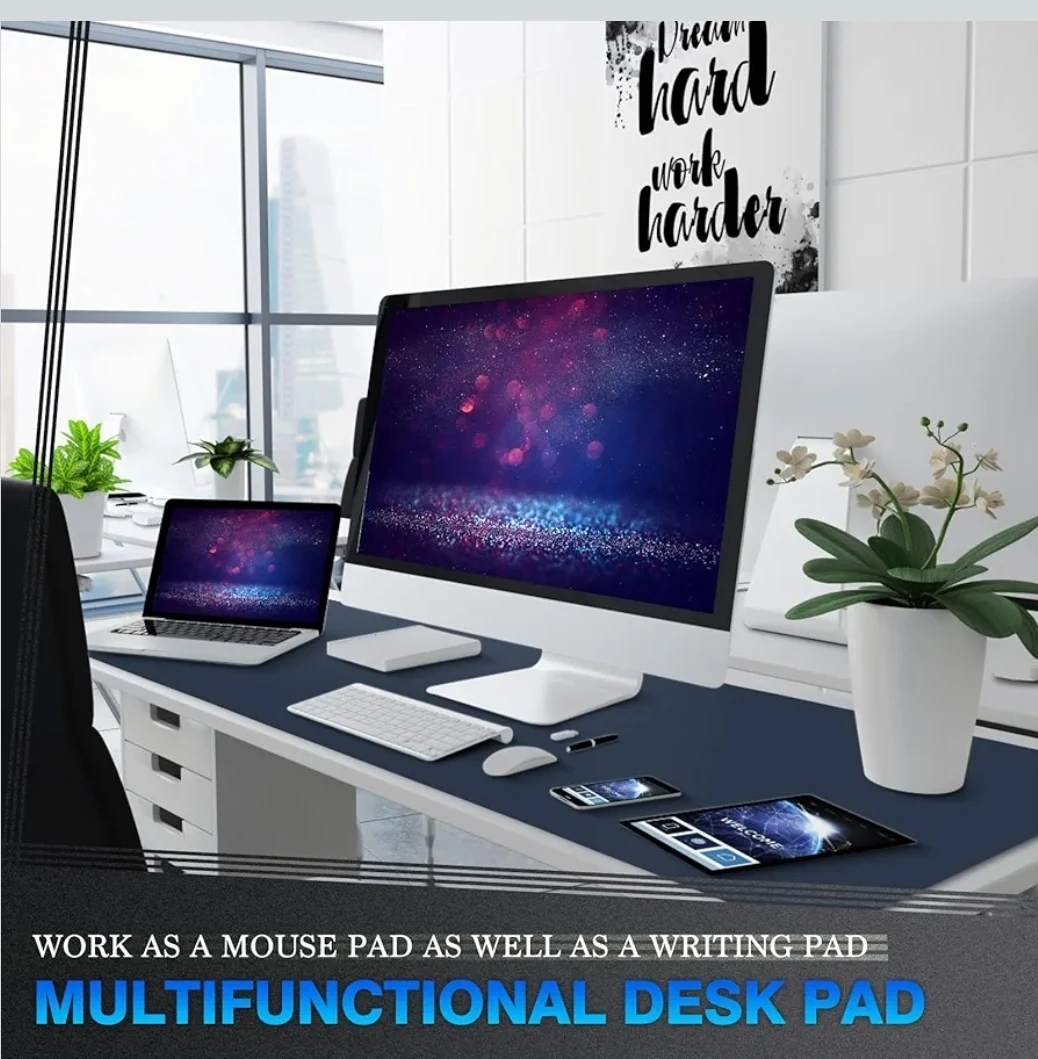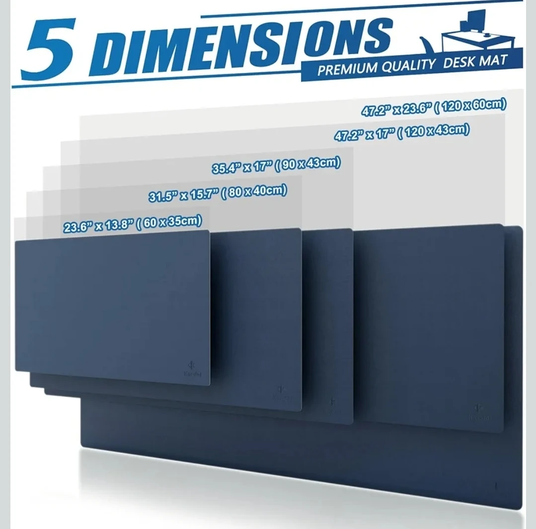 This K Knodel desk mat is made of durable, waterproof, and oil-proof leather. It's large at 47.2"x23.6" and comes in dark blue with a yellow backing. Protect your desk from scratches, spills, heat, and scuffs while using it as a mouse or writing pad.