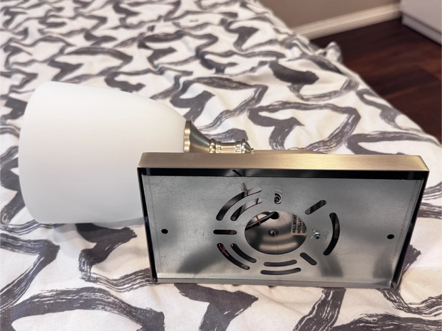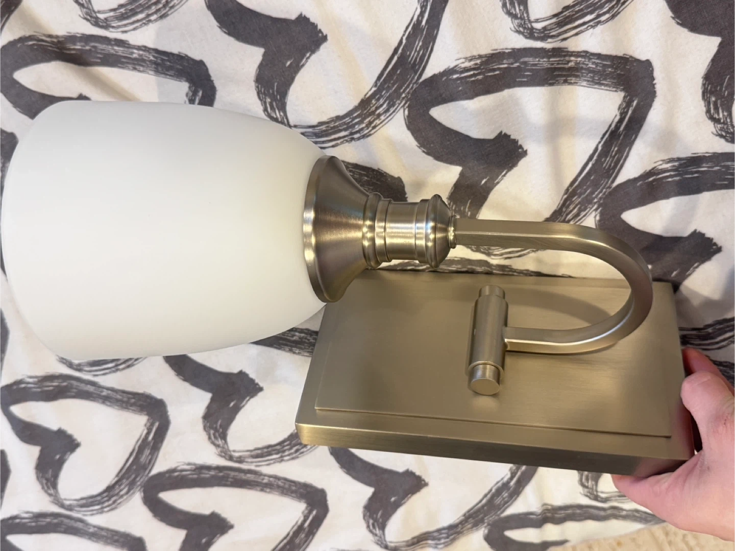 This elegant wall sconce features a brushed satin nickel finish and a frosted glass shade. It's designed for easy installation and provides a warm, inviting glow. Perfect for hallways, bedrooms, or entryways.
