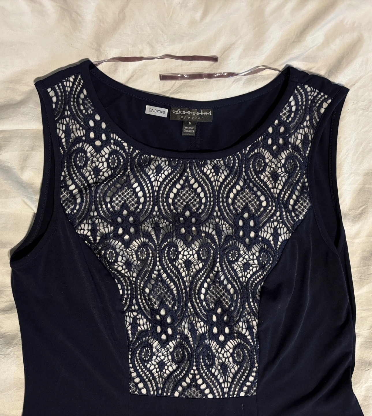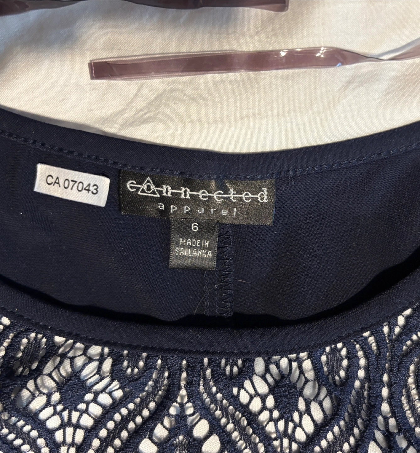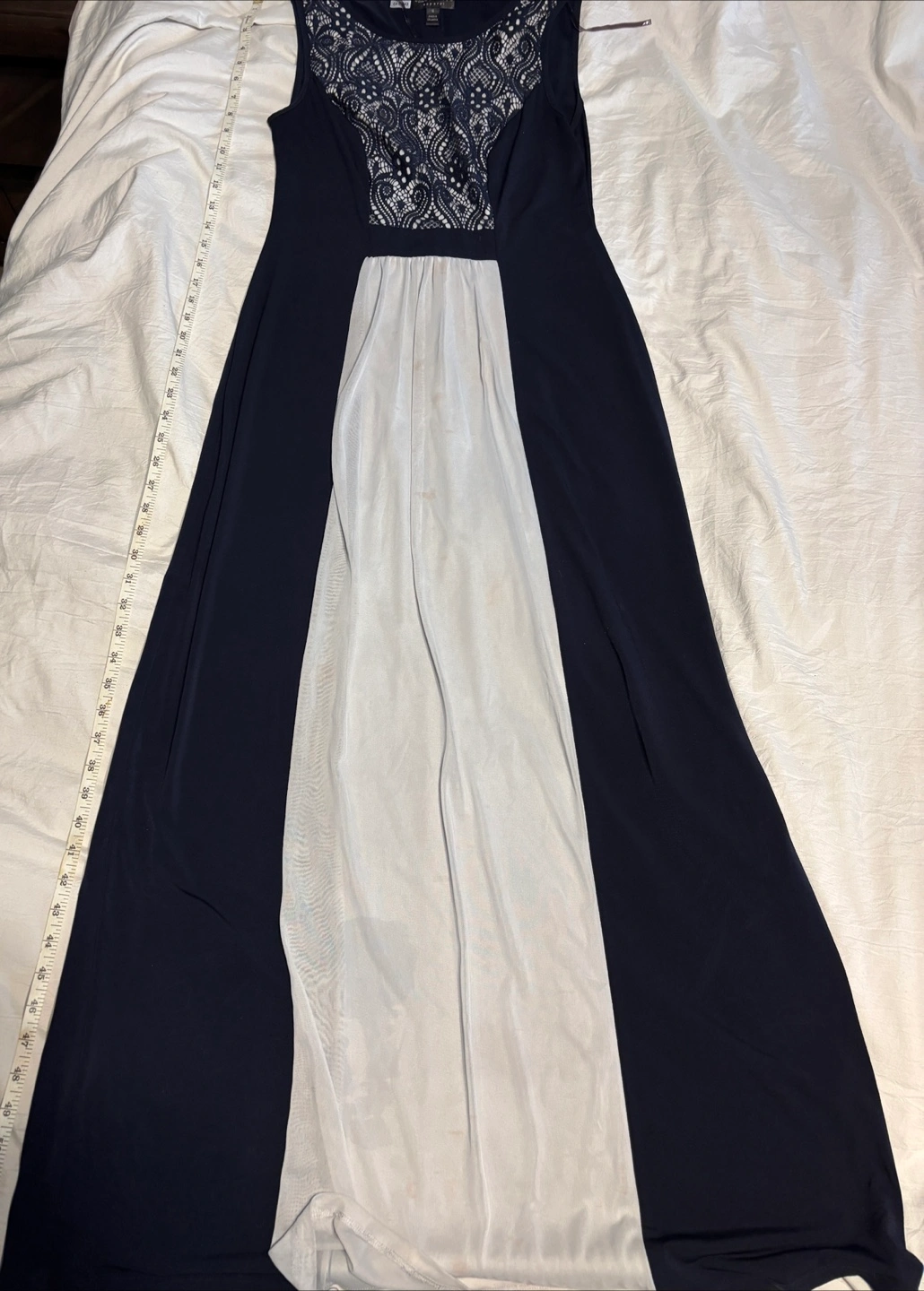 Beautiful black and white maxi dress by Connected Apparel. Features a lace bodice and a flowy skirt. Sleeveless. Size 6 .. Length 54”, waist 30”. Perfect for a special occasion.