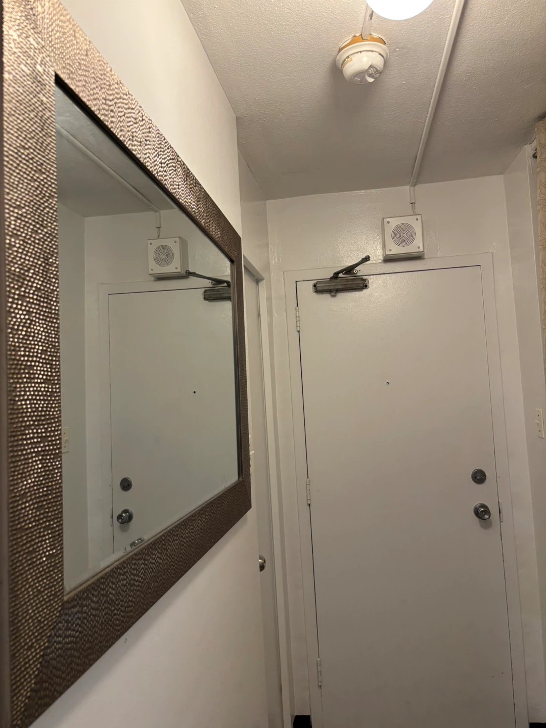 This decorative mirror features a unique textured bronze-coloured frame. It's a great size for an entryway or living space. It would add a stylish touch to any room! Stylish mirror, looks Very decorative and aesthetic along with servimg purpose. Move out sale