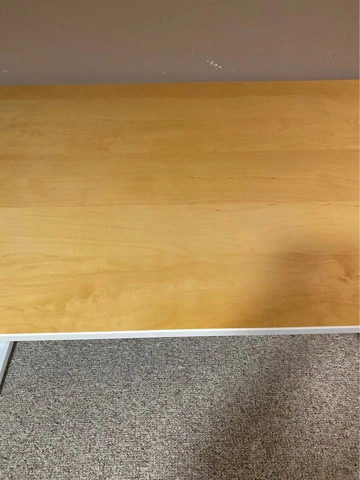 IKEA BEKANT desk. Adjustable height with allen key. Dimensions are 160cm x 80cm. Includes cable management net. There is a scratch on the side, shown in the last picture, but it's not too noticeable at an angle.