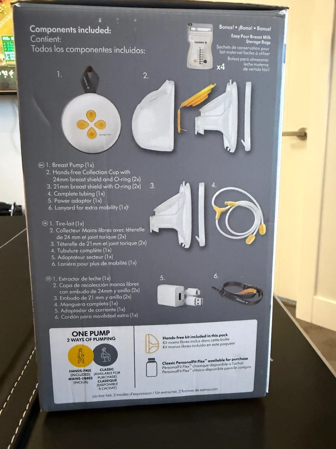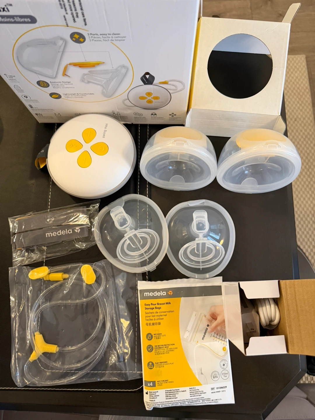 Medela Swing Maxi double electric breast pump. Includes hands-free collection cups and storage bags. Easy to clean with 3 parts.