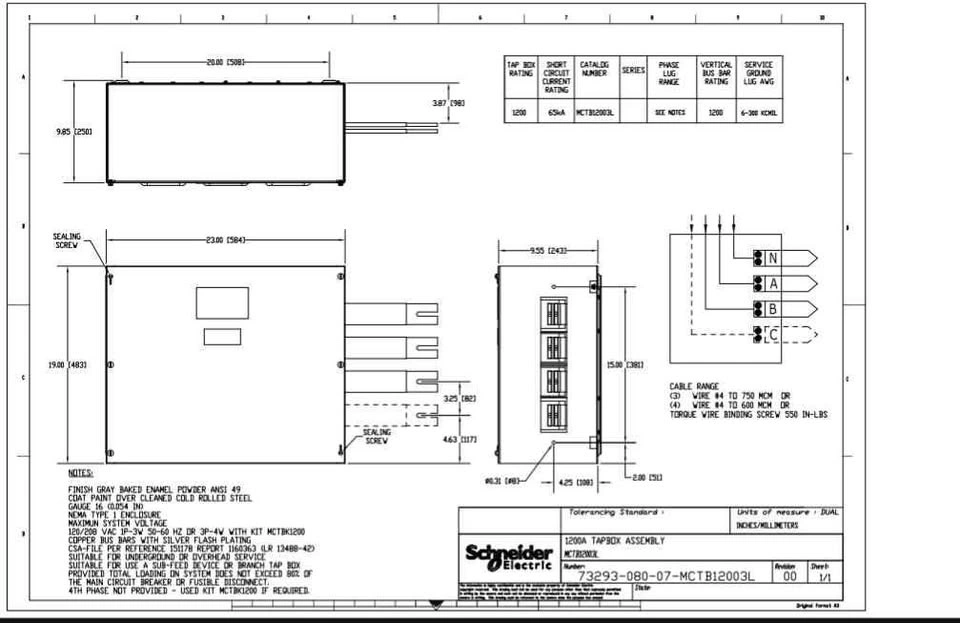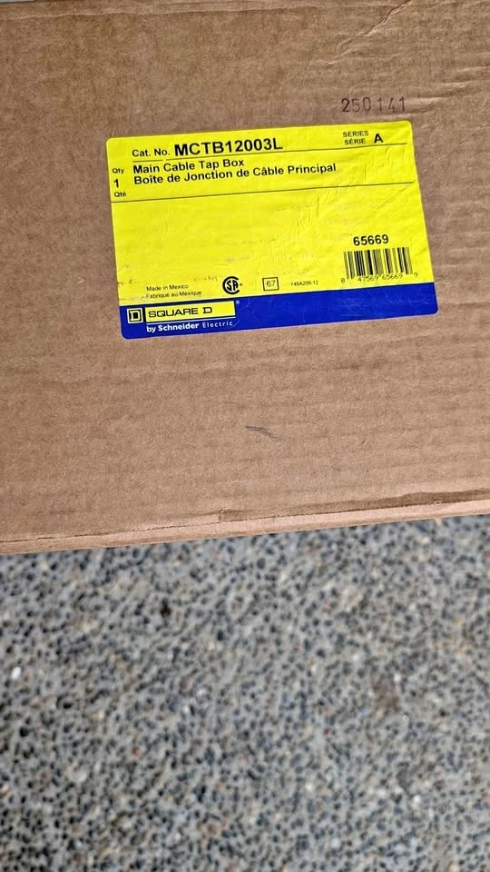 New in box, never opened. Model MCTB12003L. Main cable tap box by SQUARE D by Schneider Electric. I found drawings for it online and have added screenshots.