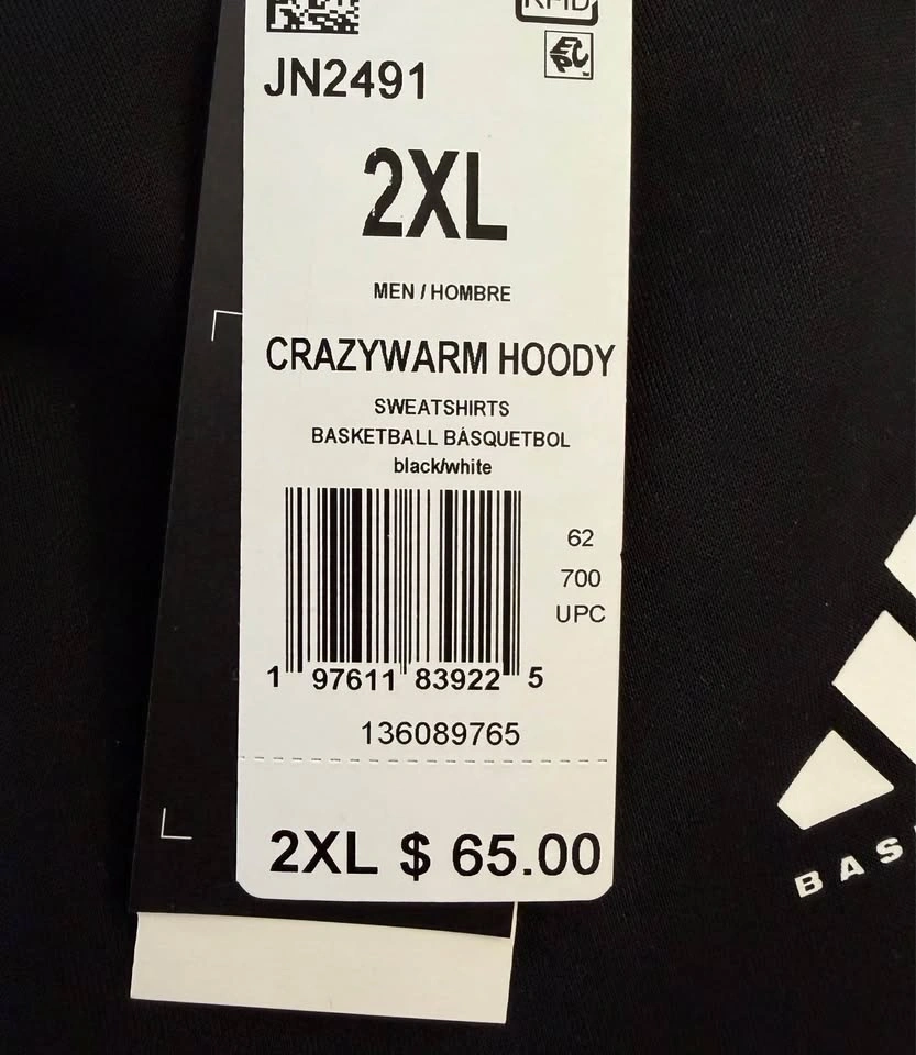 NEW Adidas Basketball 2XL Crazy Warm Hoody Black White Mens Swea