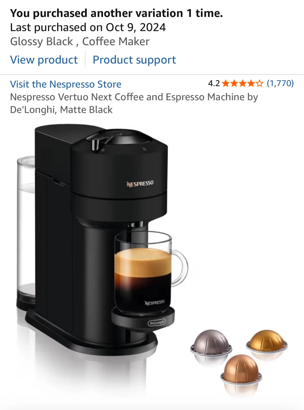Selling a Nespresso Vertuo coffee machine. It's in good condition and ready to make some delicious coffee. Fully black color. One set of pods included so you can try right away. Has barely been used - selling because I am not using it and it can serve a better purpose for someone. Price is negotiable.