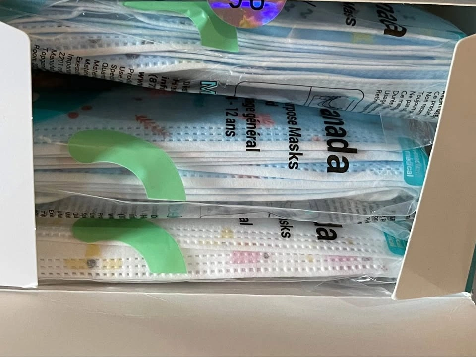 From a smoke-free, cat-friendly home. Includes 10 packs of 10 sealed black N95 masks (small children's size) and 3 packs of regular kids' masks. Porch pickup available at Whites and Bayly in Pickering.