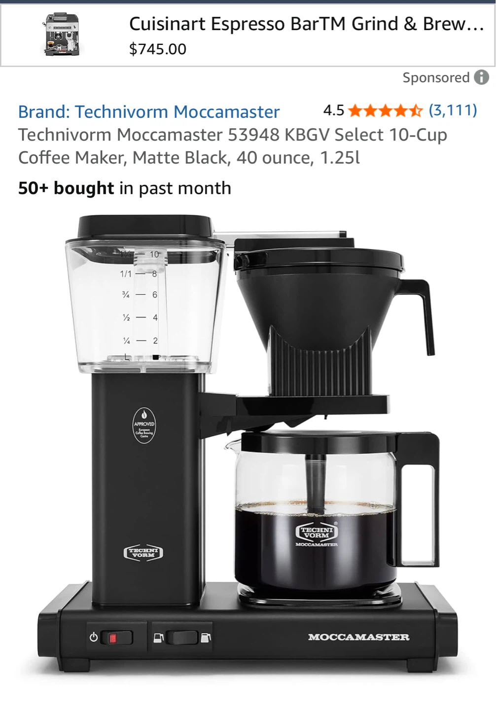 Selling a Moccamaster new coffee maker. Select 10-Cup Coffee Maker in black. It holds 40 ounces or 1.25 litres. Originally bought for $745, brand new but not in box.