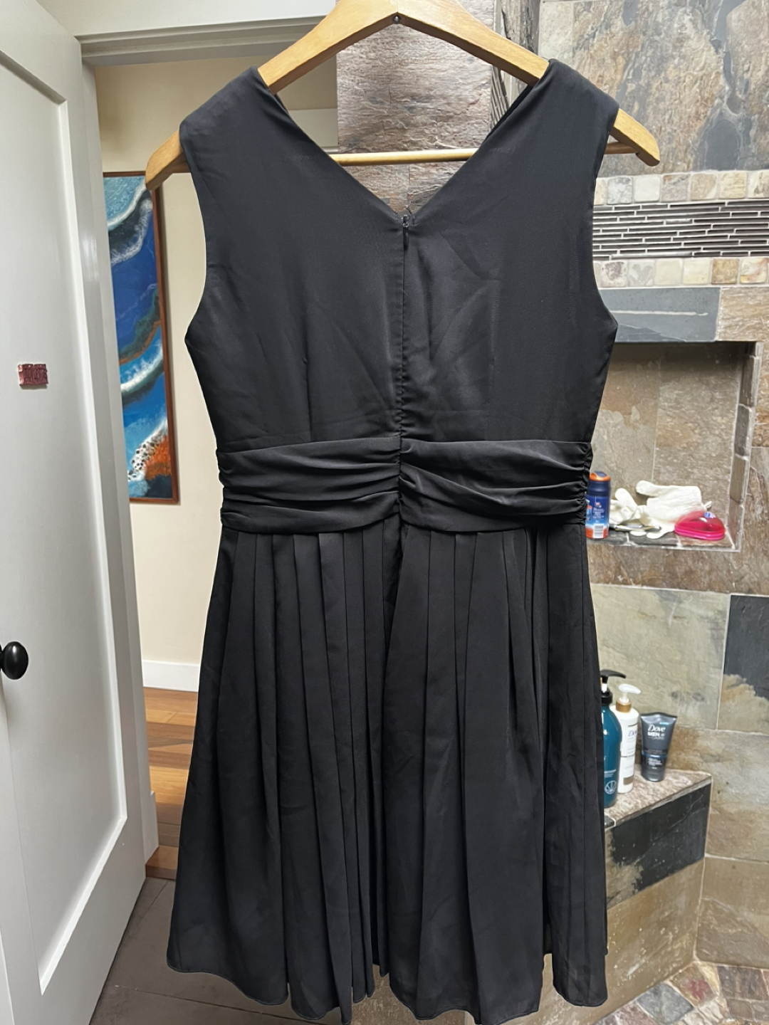 Super cute dress! A wee bit too small and too short for me. Fits as a small. I bought it secondhand and I think it might have been homemade? It’s in great condition.