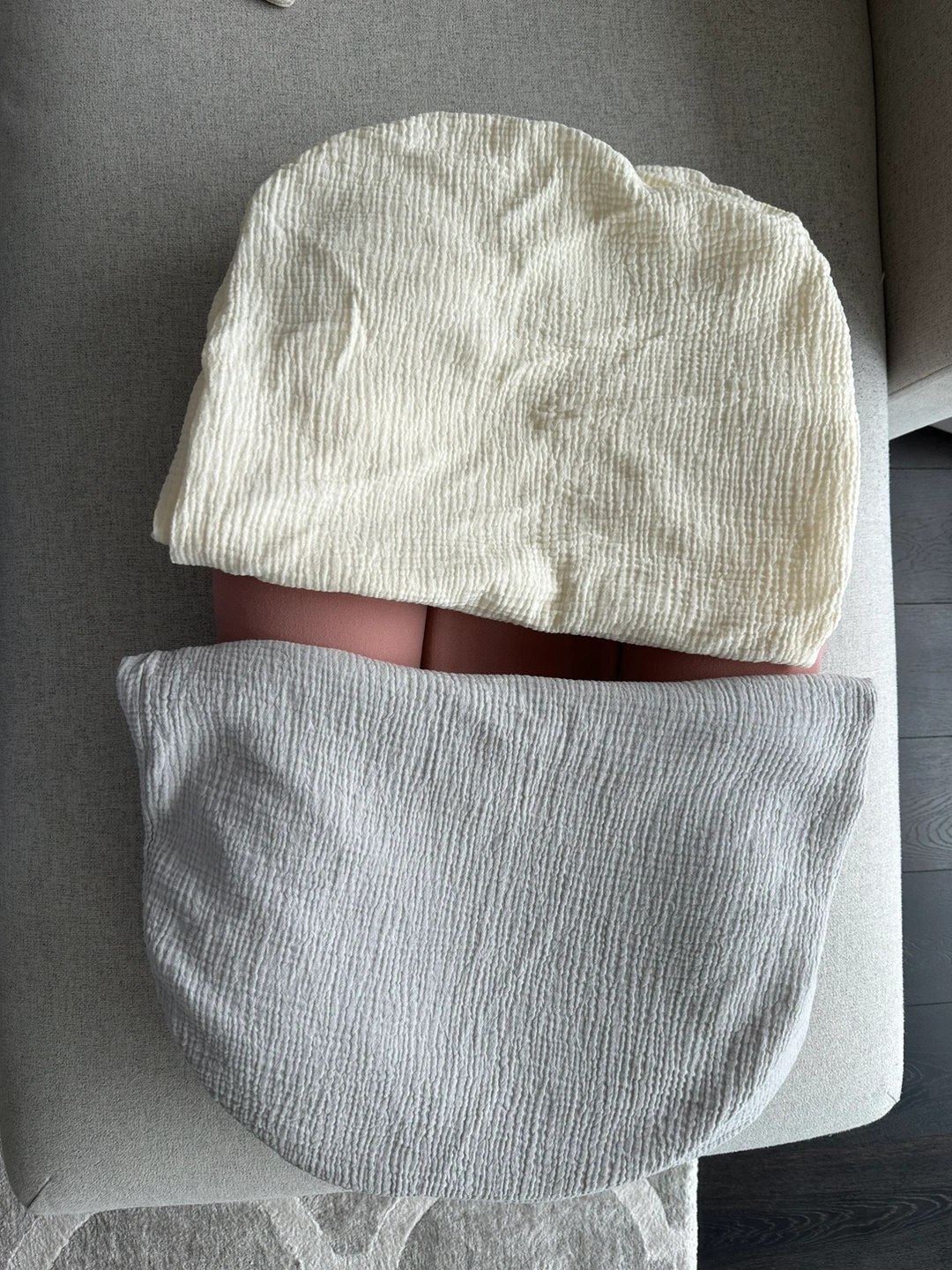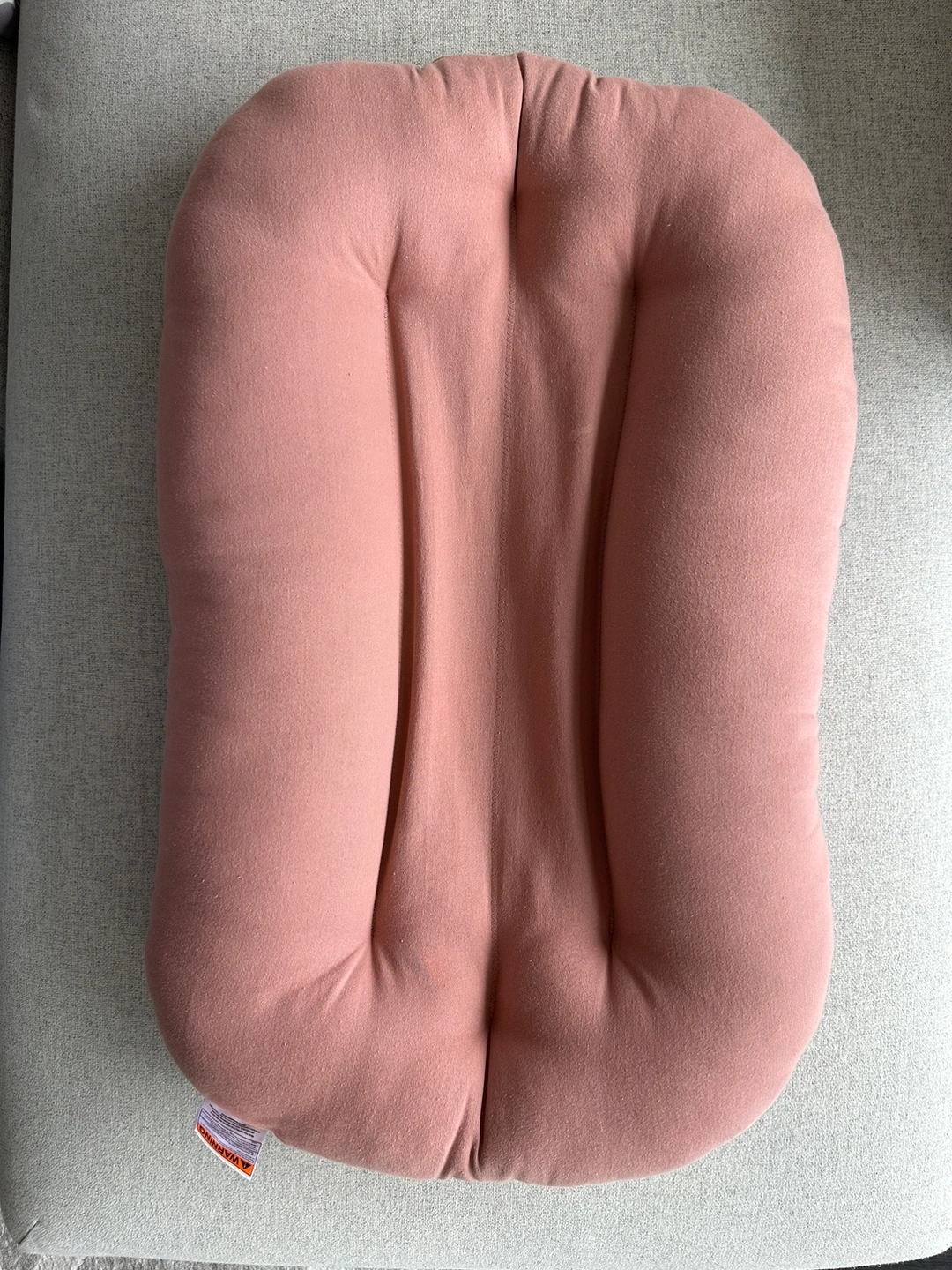 Snuggle me organic pink lounger, includes two additional covers. One beige and one grey.