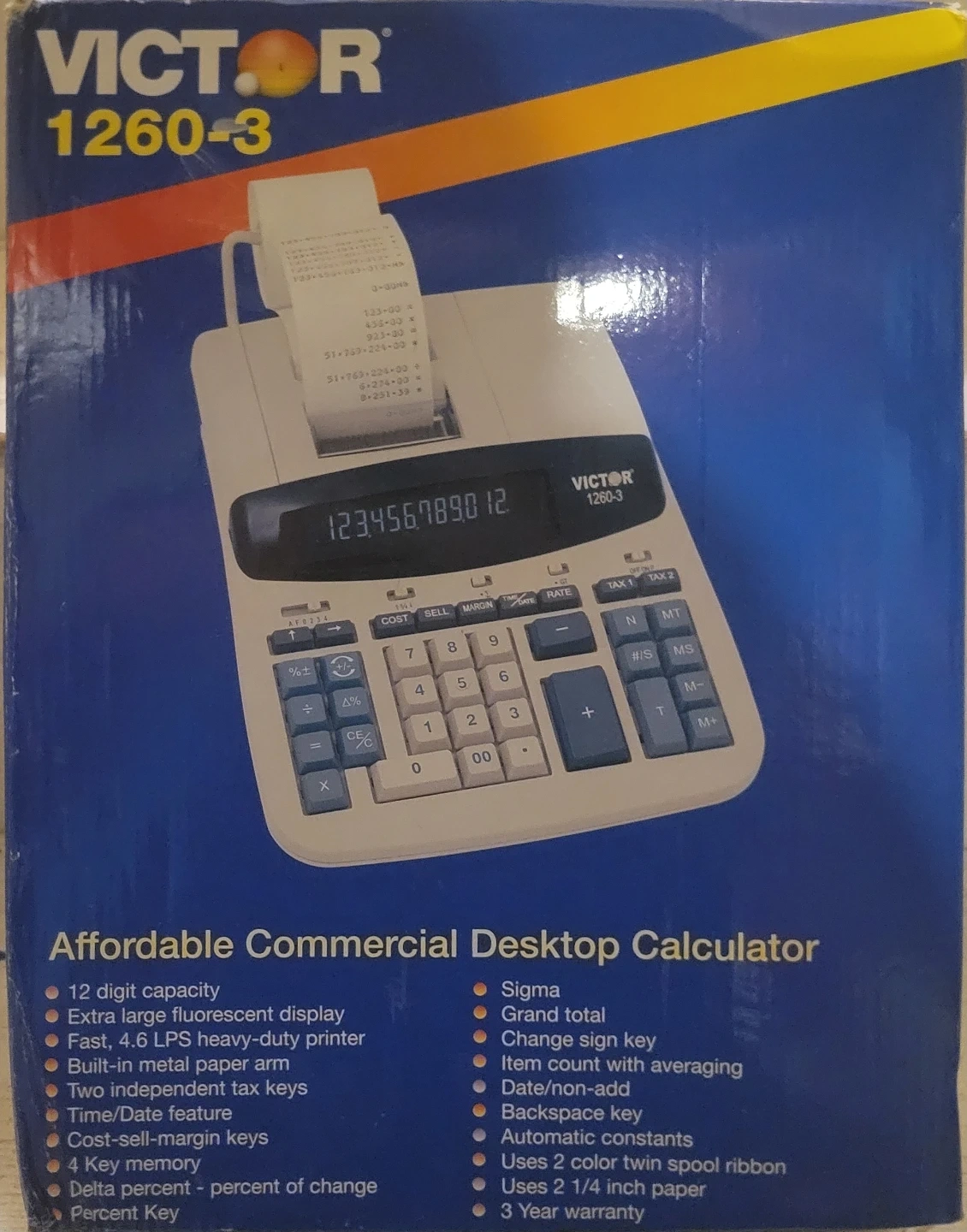 Selling a VICTOR 1260-3 commercial desktop calculator. This calculator features: