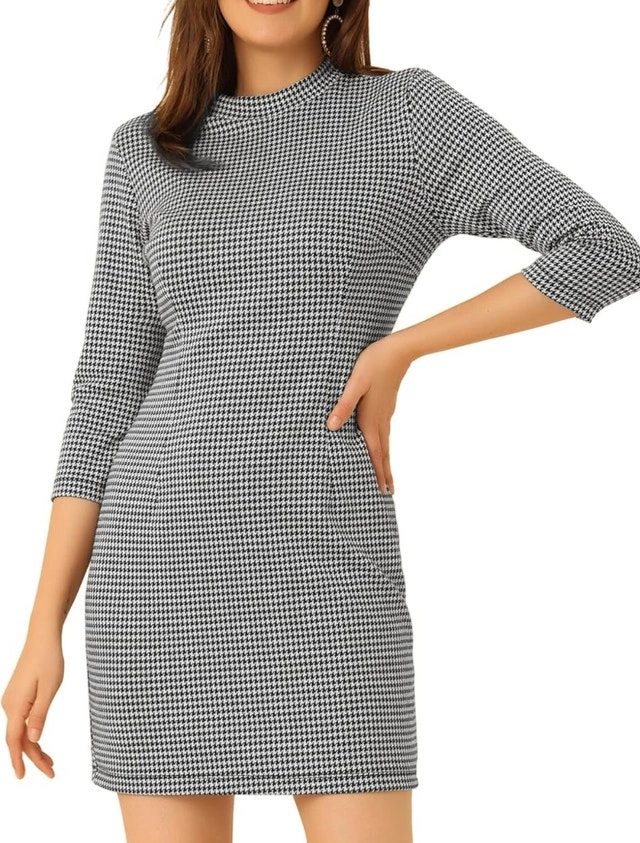 Check out this Mock Neck Mini Dress, perfect for adding a touch of vintage chic to your wardrobe! It's a size M, featuring a classic houndstooth pattern and a flattering mini length. Specifications: * Size: M * Design: Houndstooth * Neckline: Mock Neck * Sleeve Length: 3/4 Sleeve * Dress Length: Mini If you're seeing this ad, the dress is still available – ready to make a statement at your next event! Available for a pick up in Brampton near Sheridan College at Blue Bonnet Drive.