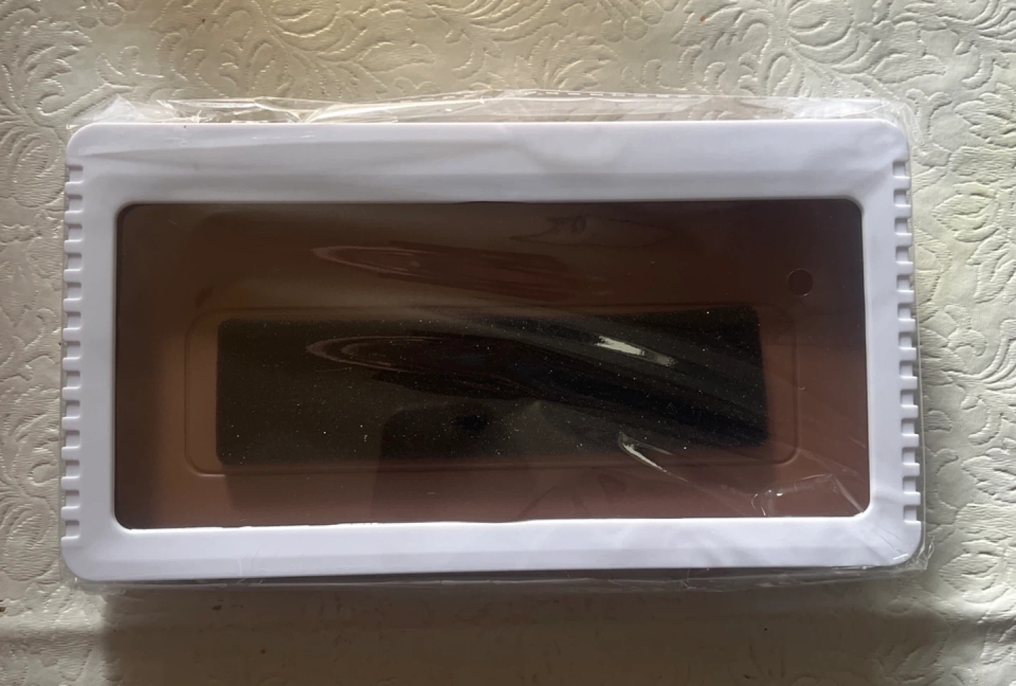 Keep your phone safe and dry with this wall-mounted phone case! It's perfect for using your phone in the shower or while cooking. The case is brown and in new condition. It comes with a box