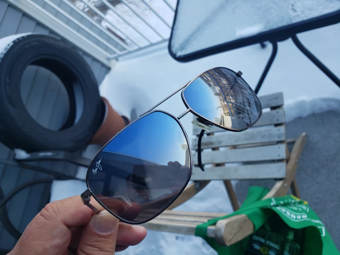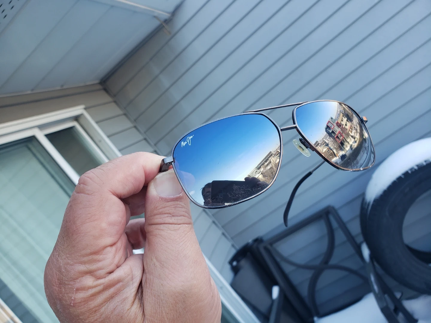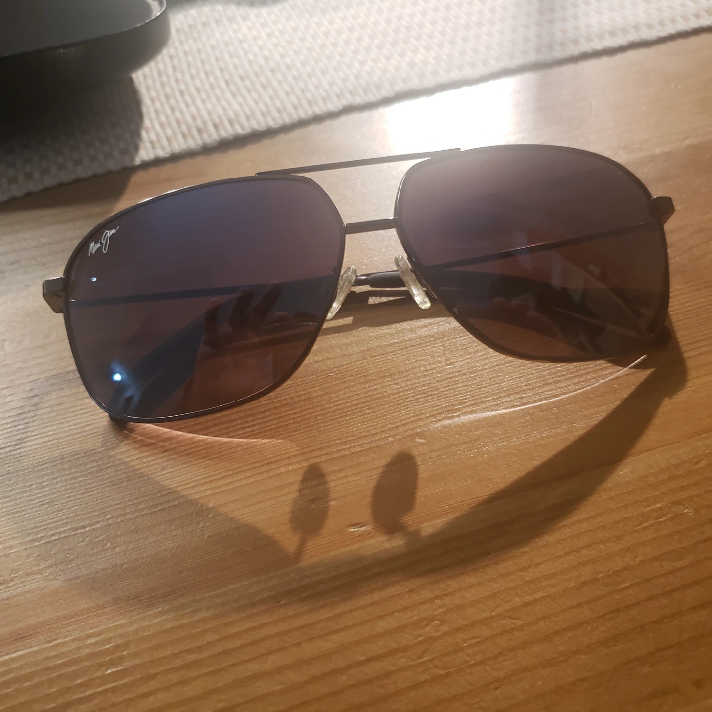 Classic Maui Jim Kami aviator sunglasses. These shades offer excellent glare reduction and clarity. With Black Leather RAY-BAN Clamshell Case & Cartier Cleaning Cloth.