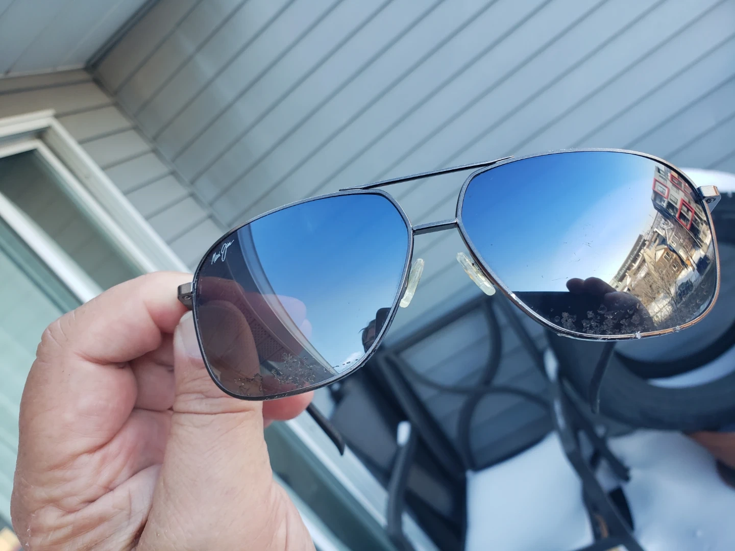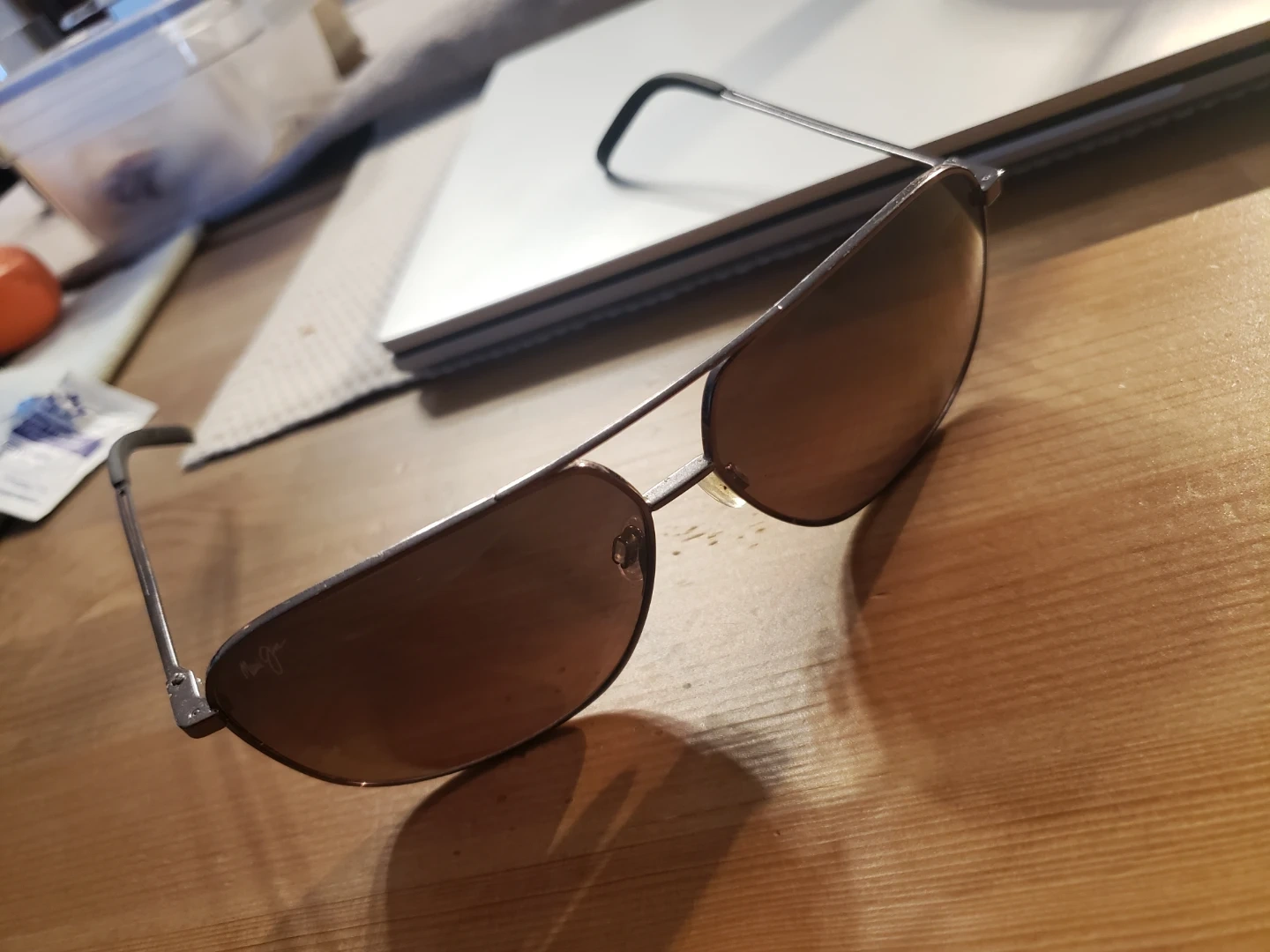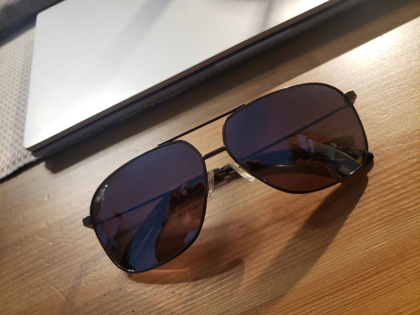 Classic Maui Jim Kami aviator sunglasses. These shades offer excellent glare reduction and clarity. With Black Leather RAY-BAN Clamshell Case & Cartier Cleaning Cloth.