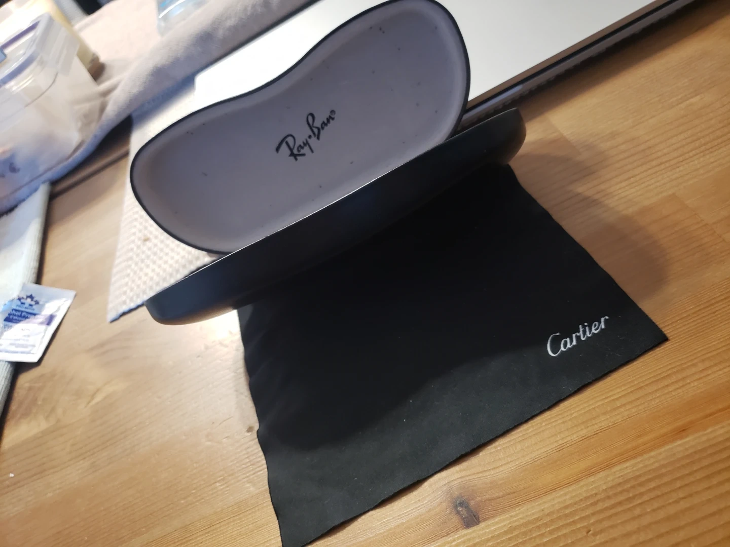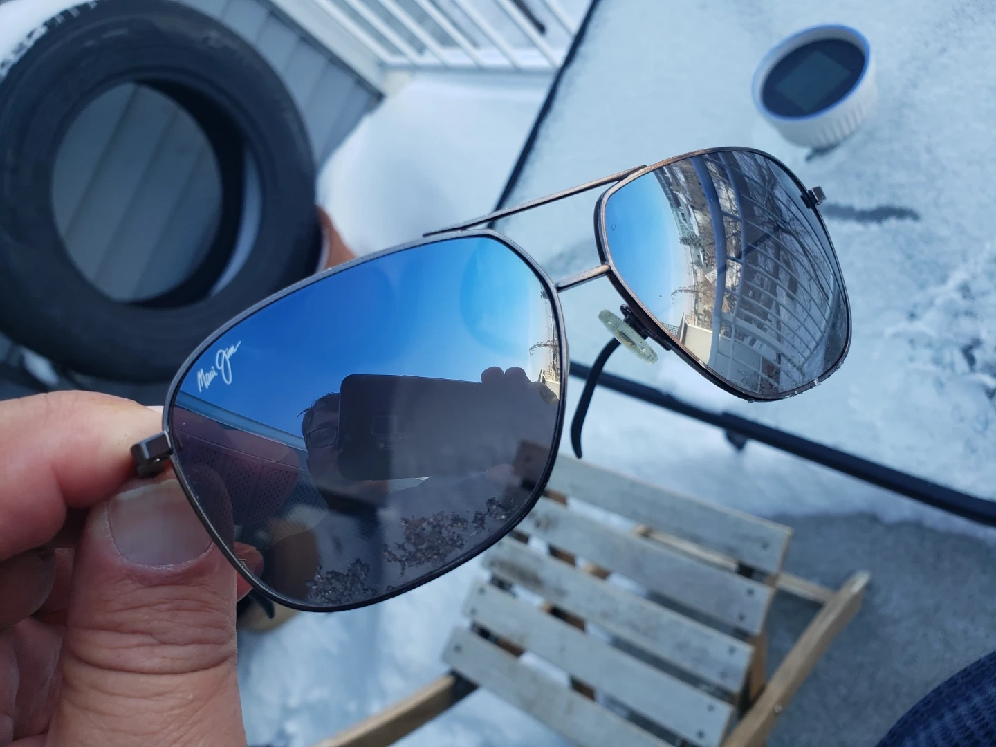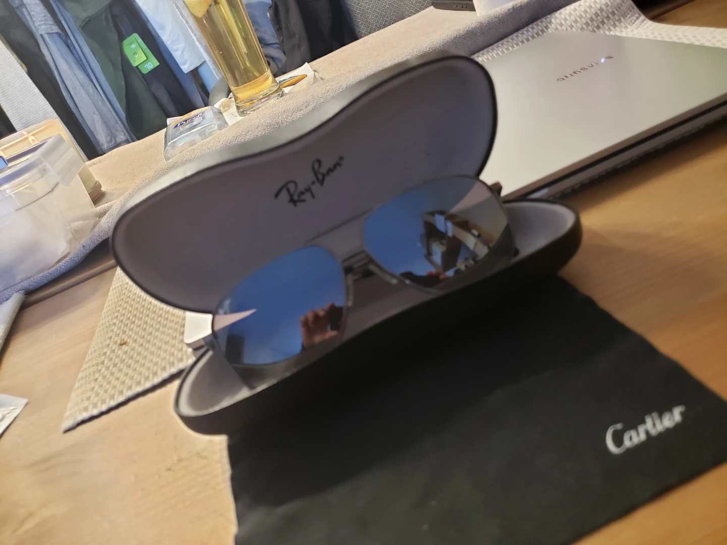 Classic Maui Jim Kami aviator sunglasses. These shades offer excellent glare reduction and clarity. With Black Leather RAY-BAN Clamshell Case & Cartier Cleaning Cloth.