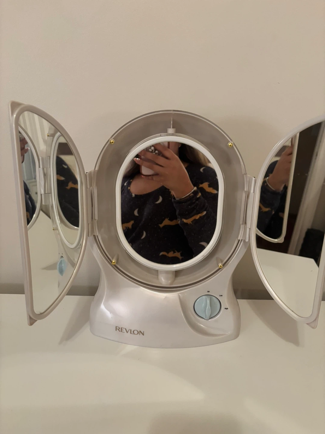Introducing a beautiful vintage lighted magnified mirror from Revlon! This freestanding mirror is perfect for your bathroom and will surely enhance your makeup routine. With its magnifying feature, you can easily apply makeup and get a closer look at your skin without any hassle. The mirror measures 14 in height, 10 in length, and 3 in width. Its features include a magnifying glass that will help you achieve a flawless finish every time. Upgrade your bathroom with this elegant piece of decor now!