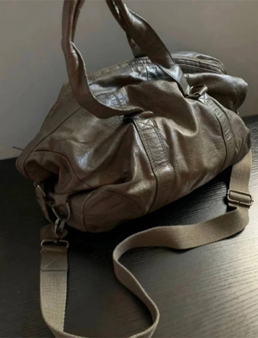 •Rugged, and full of character, this preloved duffle features a rich patina, aged hardware, and a spacious interior.