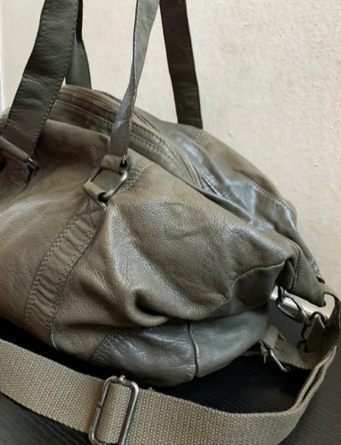 Duffle Bag-Vintage Leather Duffle Bag-Grey Green