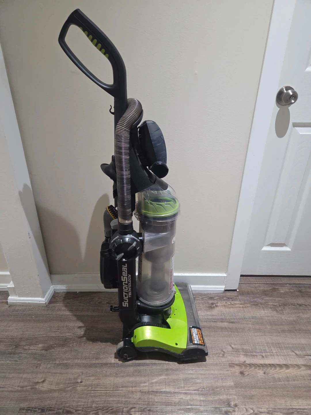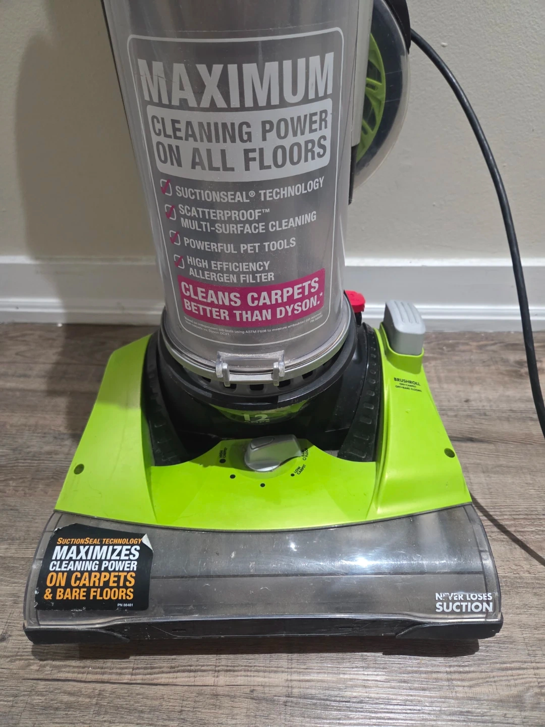 This Eureka vacuum cleaner features maximum cleaning power on all floors. It includes the Pet Power Paw stair and upholstery brush for specialized cleaning. It uses SuctionSeal technology for optimal cleaning on carpets and bare floors.