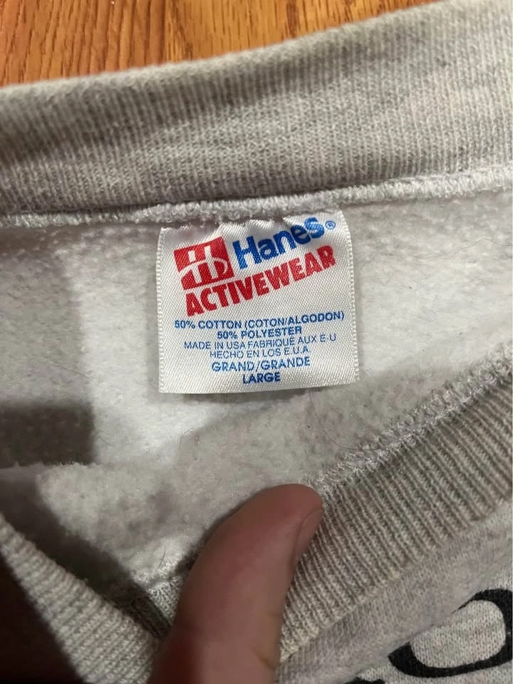Classic Hanes sweatshirt featuring the Toronto Blue Jays 1992 World Champions graphic on the front. Material is 50% cotton and 50% polyester. Size Large. Pickup available at Tim Hortons – 18682 Fraser Hwy #401.