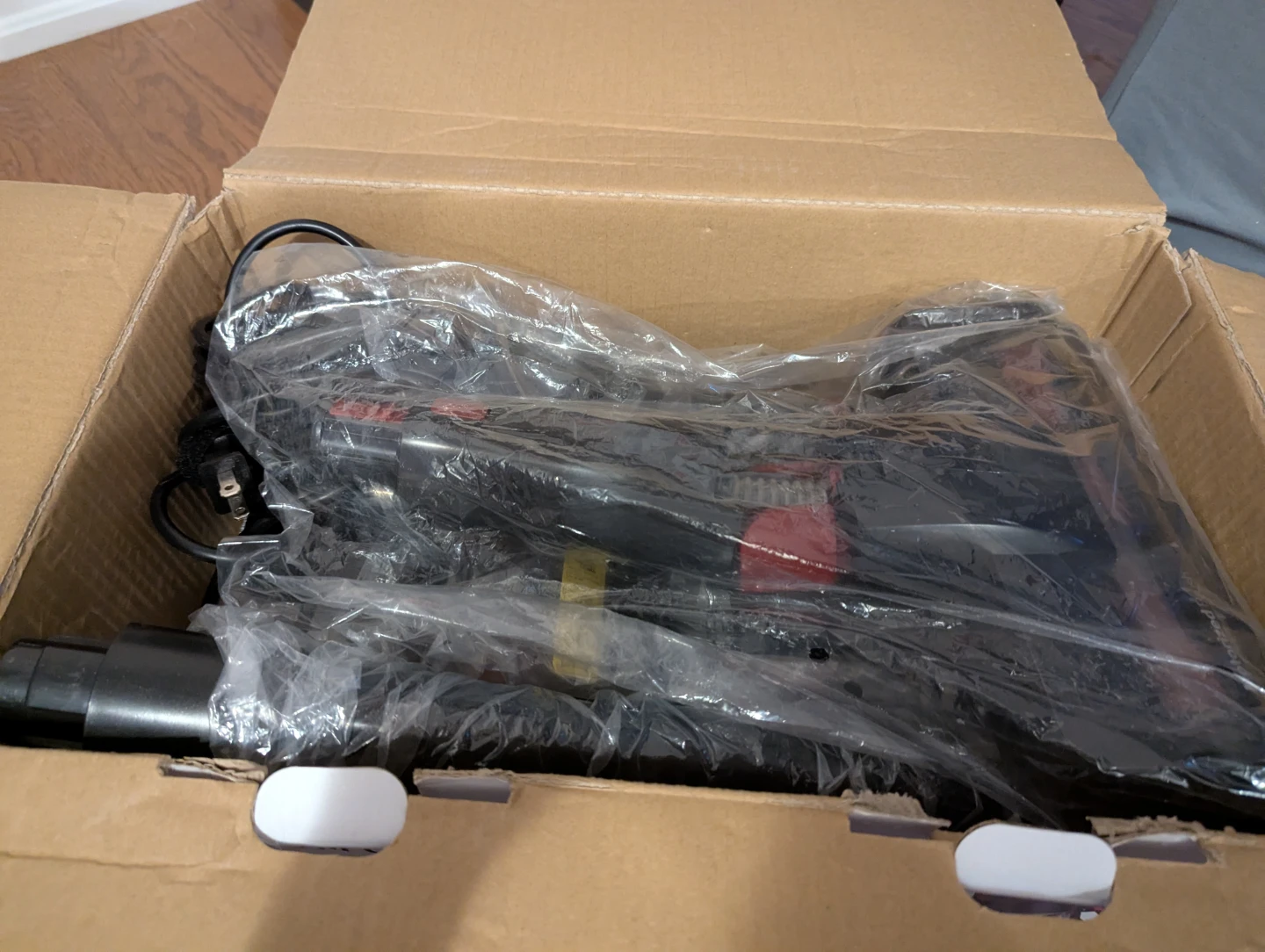 Used Girnoor G160 corded stick vacuum cleaner. This black and red vacuum has super suction and converts to a handheld unit. It comes in the original box with all parts.