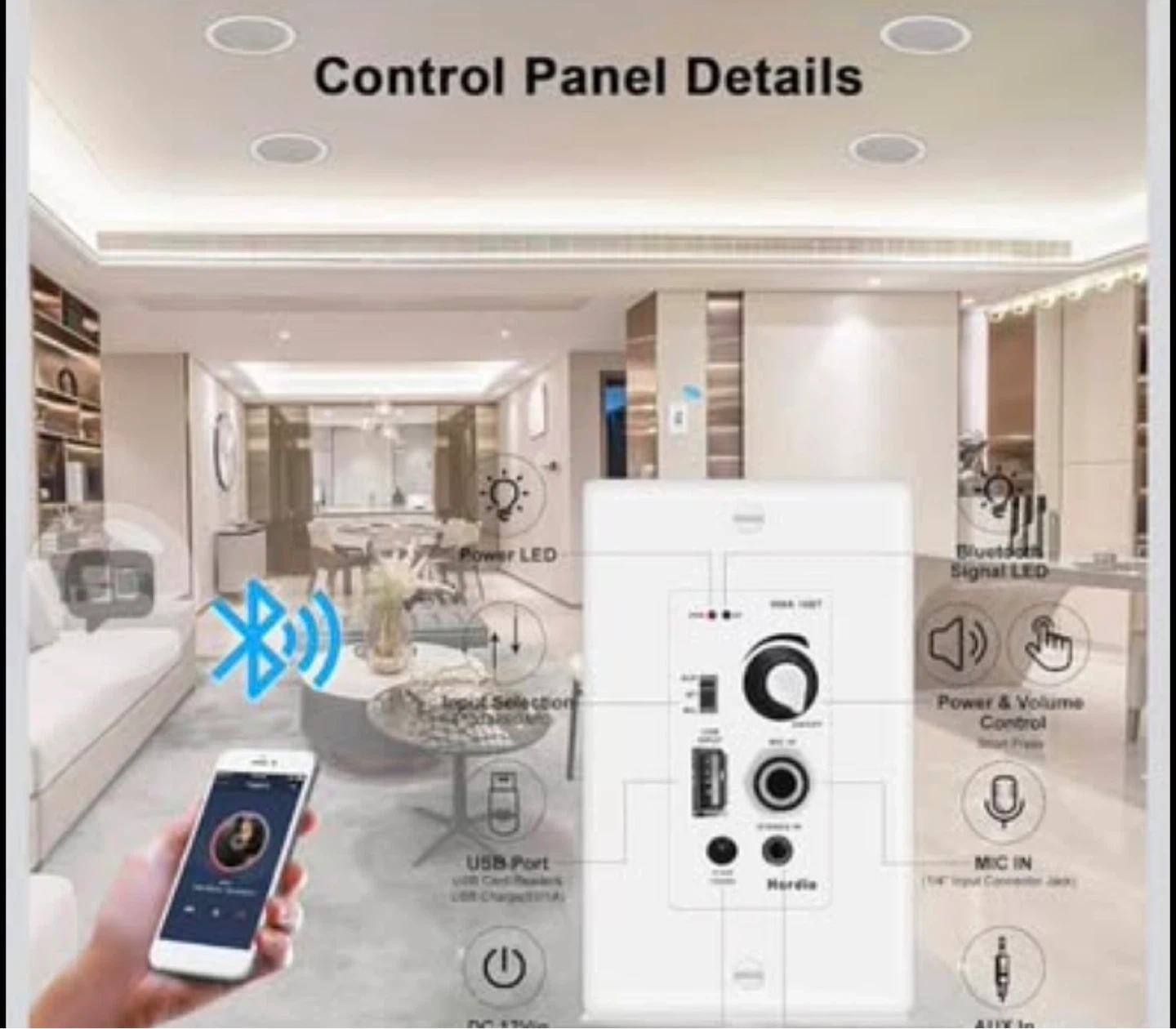 Herdio 5.25 Inch Bluetooth Ceiling Speakers Max Power 600W 2-Way Flush Mount Wall Mount Amplifier Receiver Suitable for Home Theater Living Room Kitchen Office (4 Speakers)