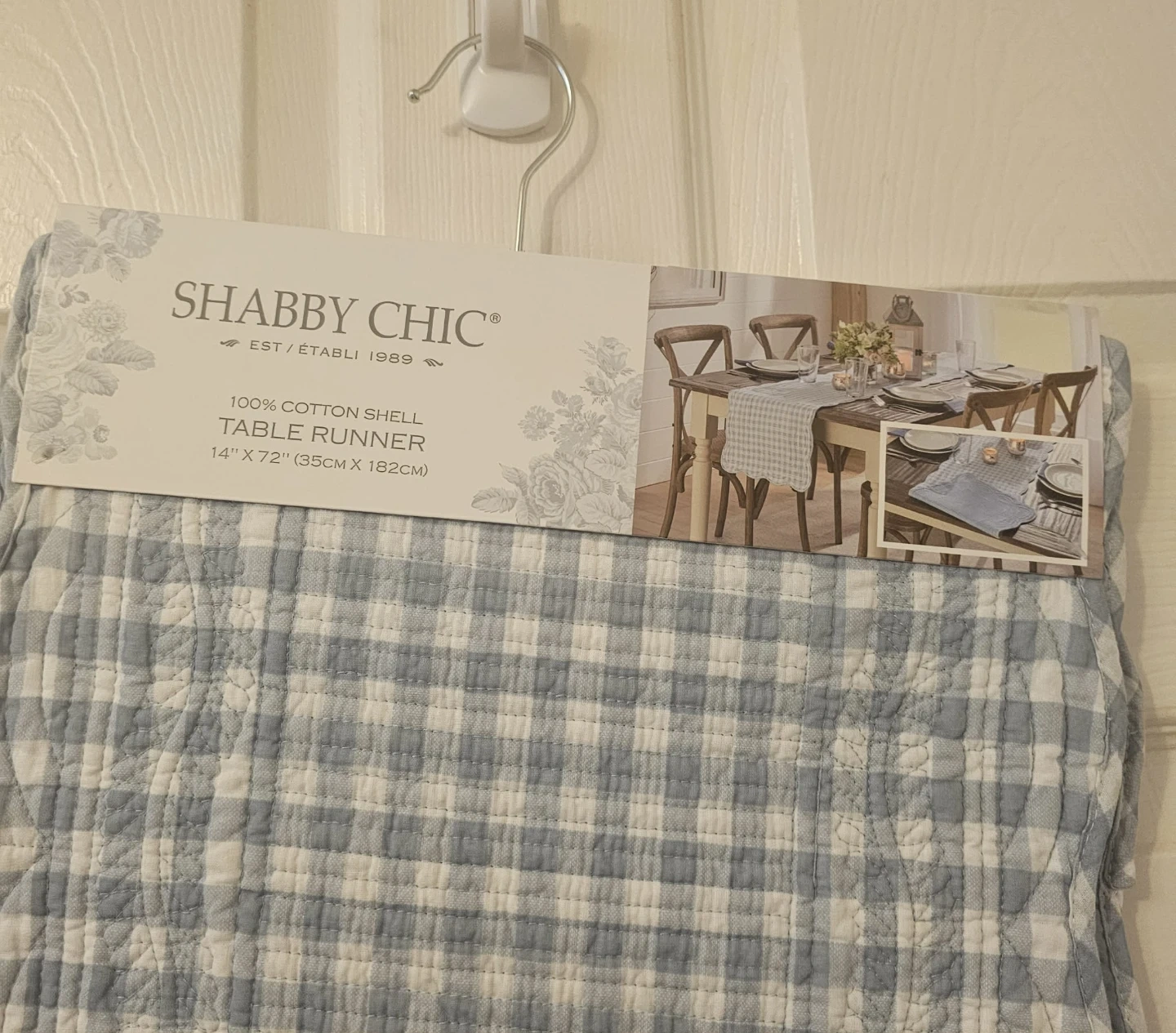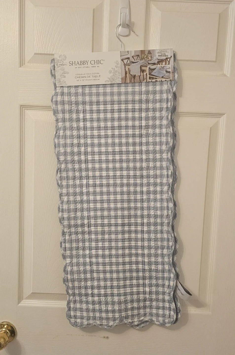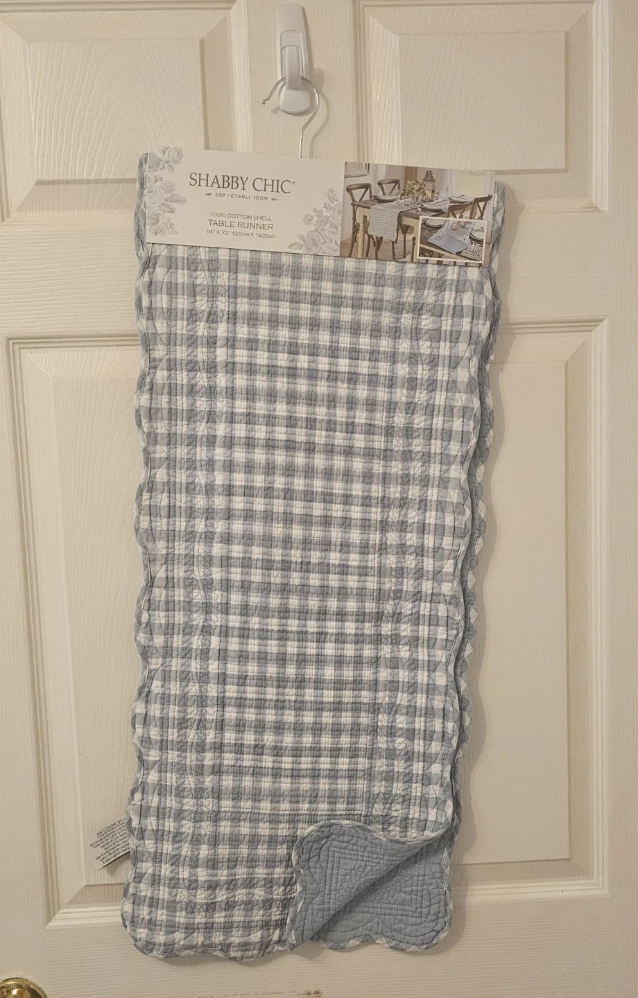 This Blue and White Shabby Chic Checkered Table Runner is Brand New and never worn. Tags attached.