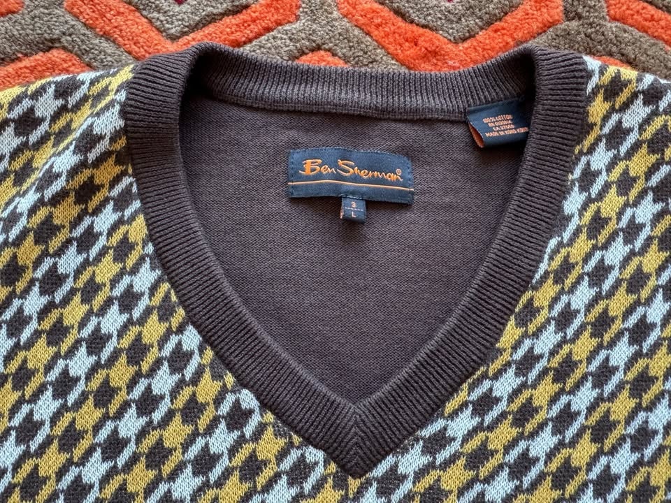 ๐ Ben Sherman Sweater Pullover Houndstooth Dogtooth Men's L