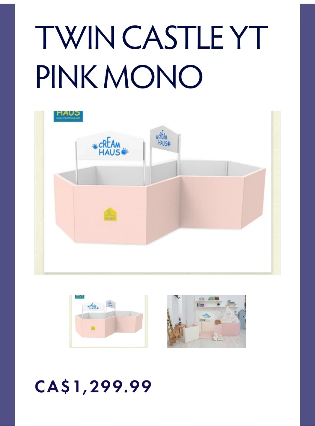 Cream Haus Twin Castle YT Pink Mono Play Tent