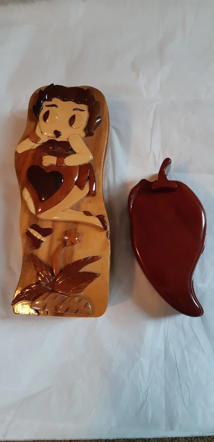 Both are lined with red velvet and are perfect for storing jewels and trinkets.