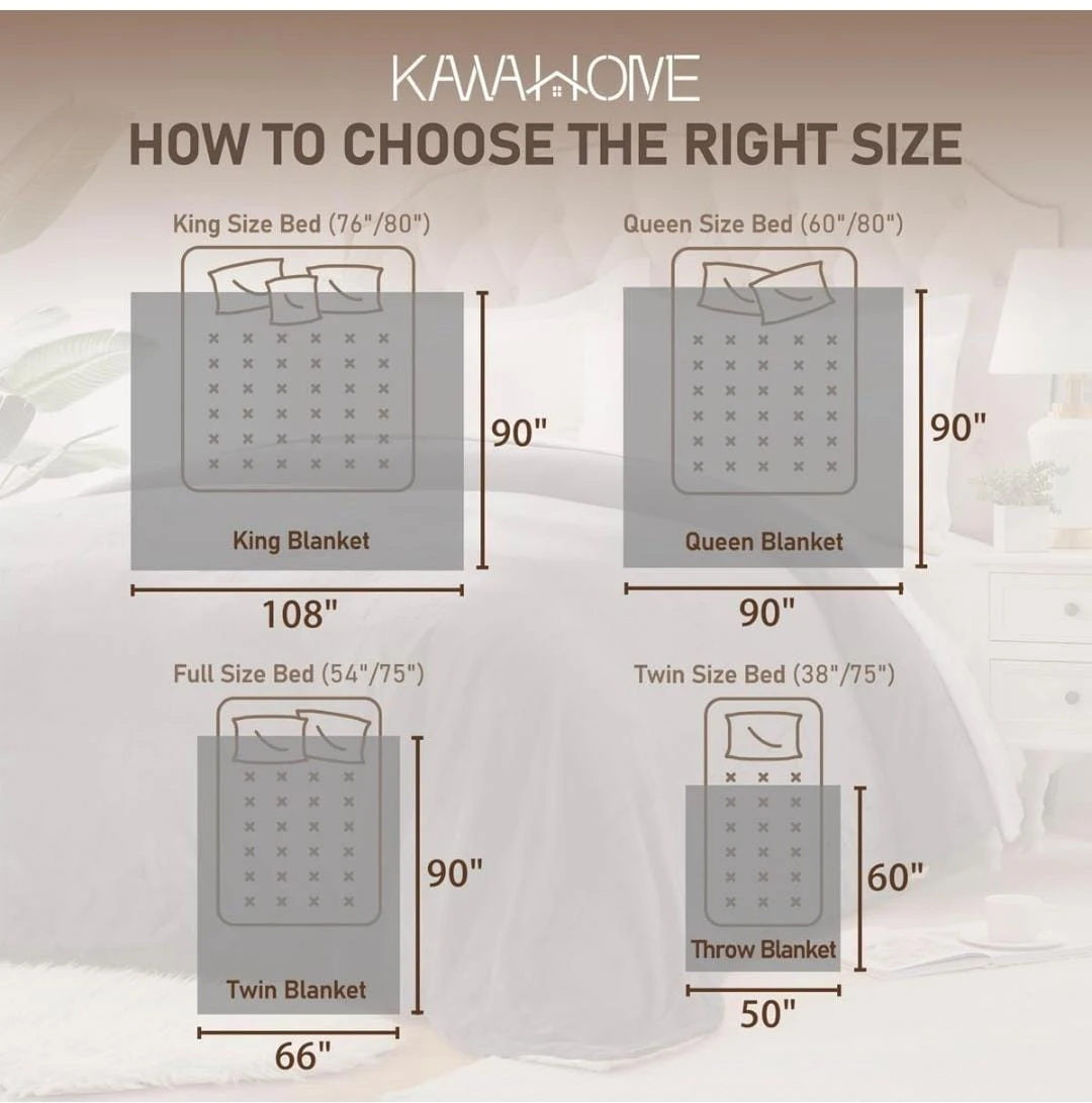 Kawahome 500GSM Sherpa Fleece Blanket – Queen Size 90”×90”