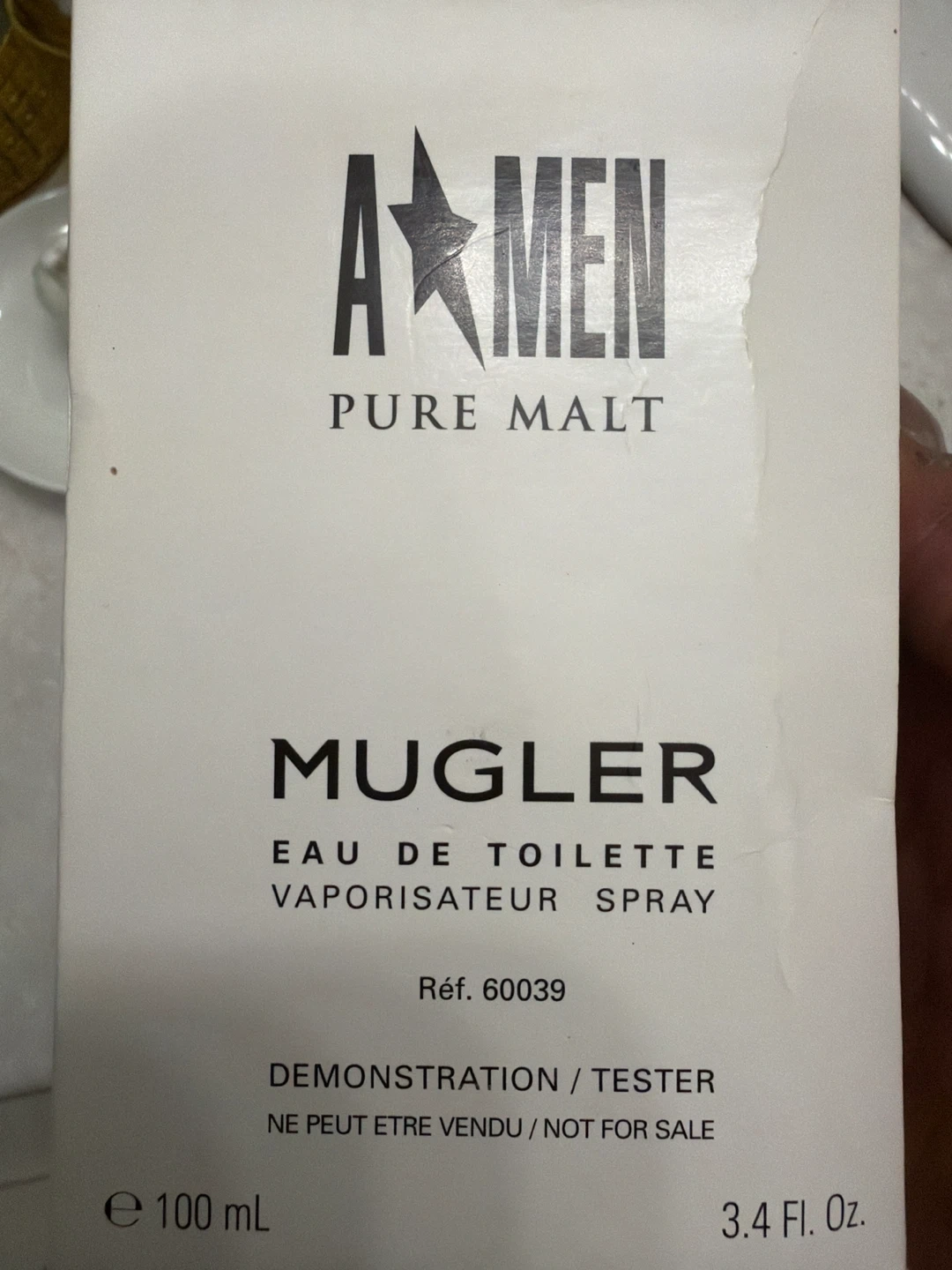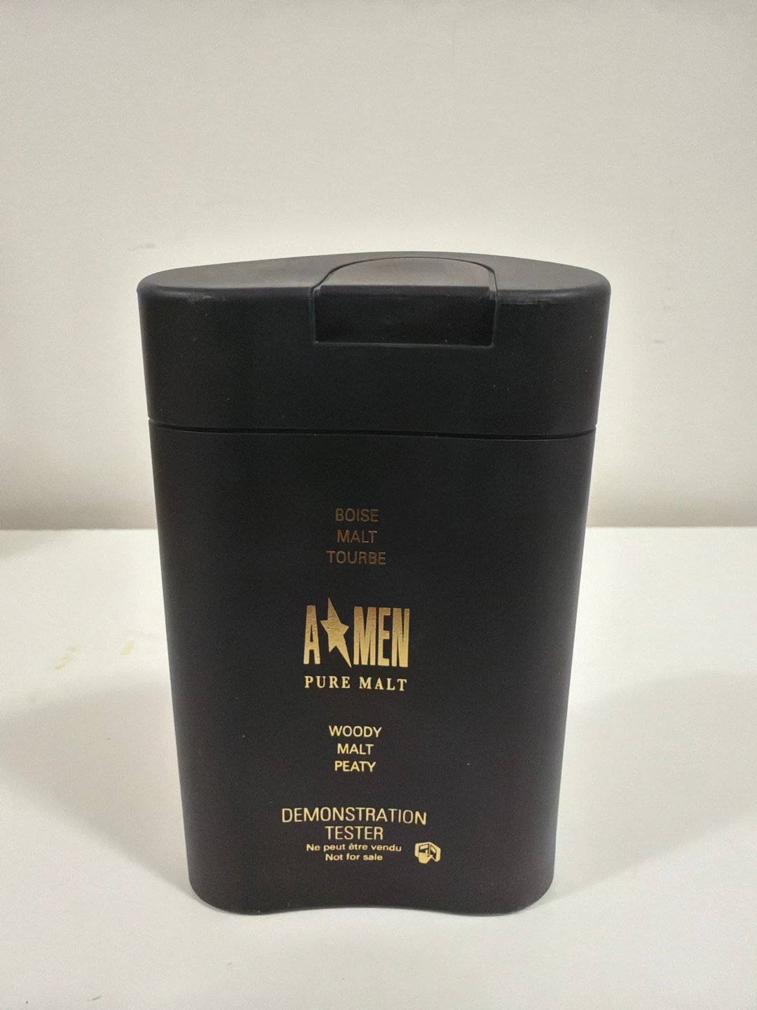 This is a Mugler A*Men Pure Malt Eau de Toilette Demonstration Tester. It's a 100ml spray. The fragrance notes include woody, malt, and peaty.