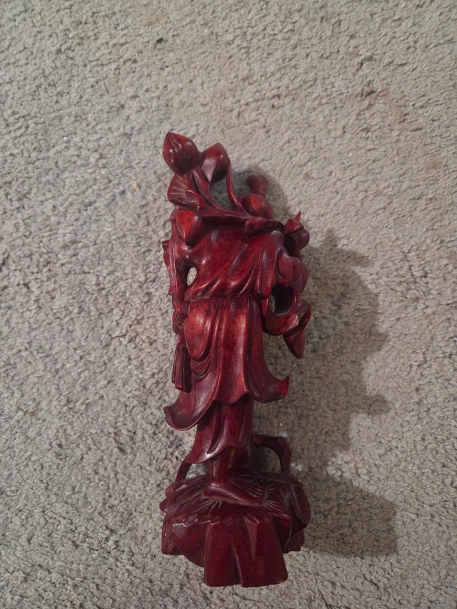 - Quality Craftsmanship: Intricately hand-detailed carving with a rich, dark polished finish and smooth patina.