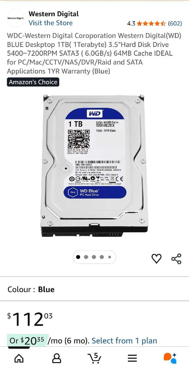 1TB 3.5" SATA WD HDD