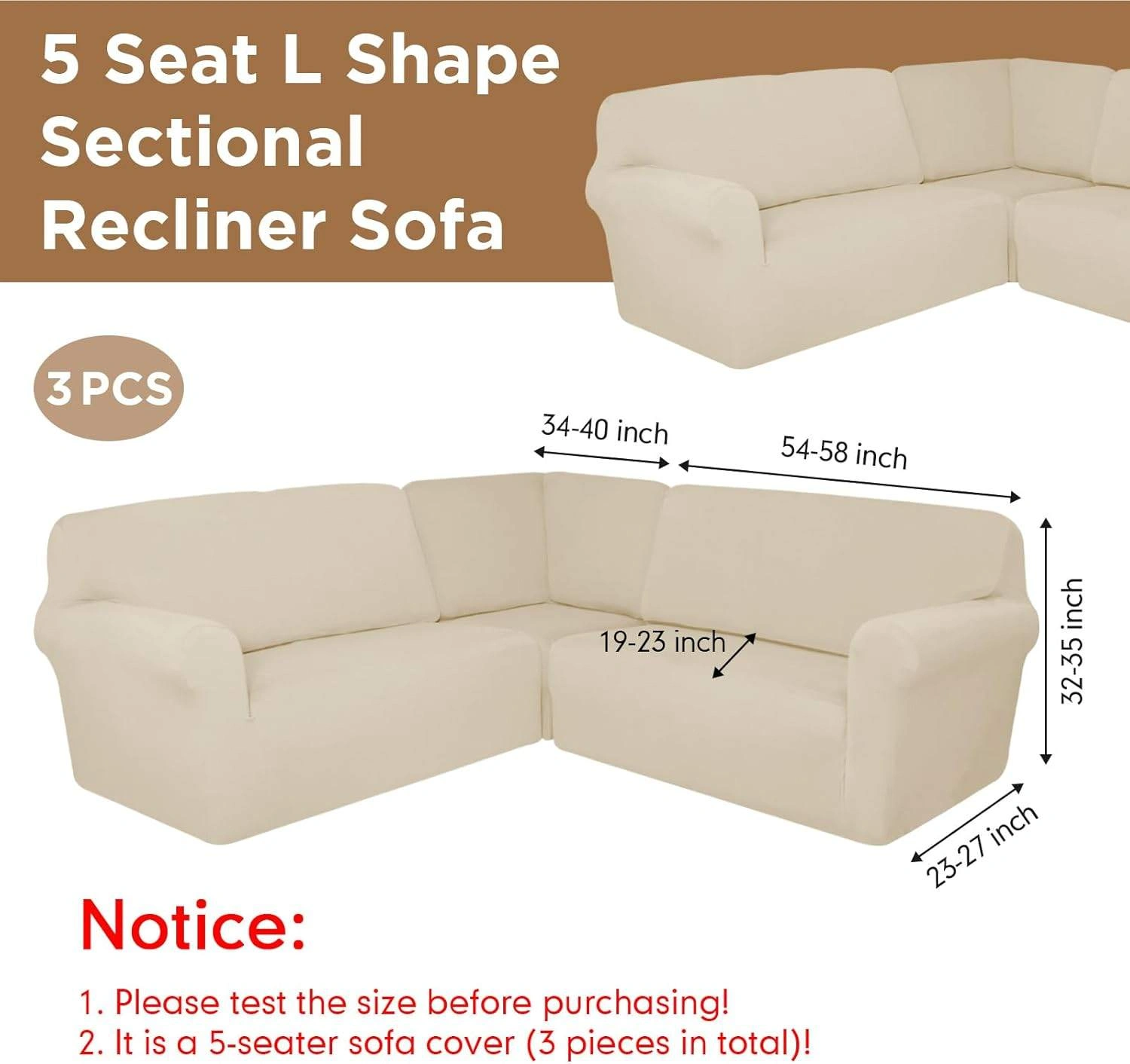 5-Seat L Shape Sectional Recliner Sofa Cover - Beige