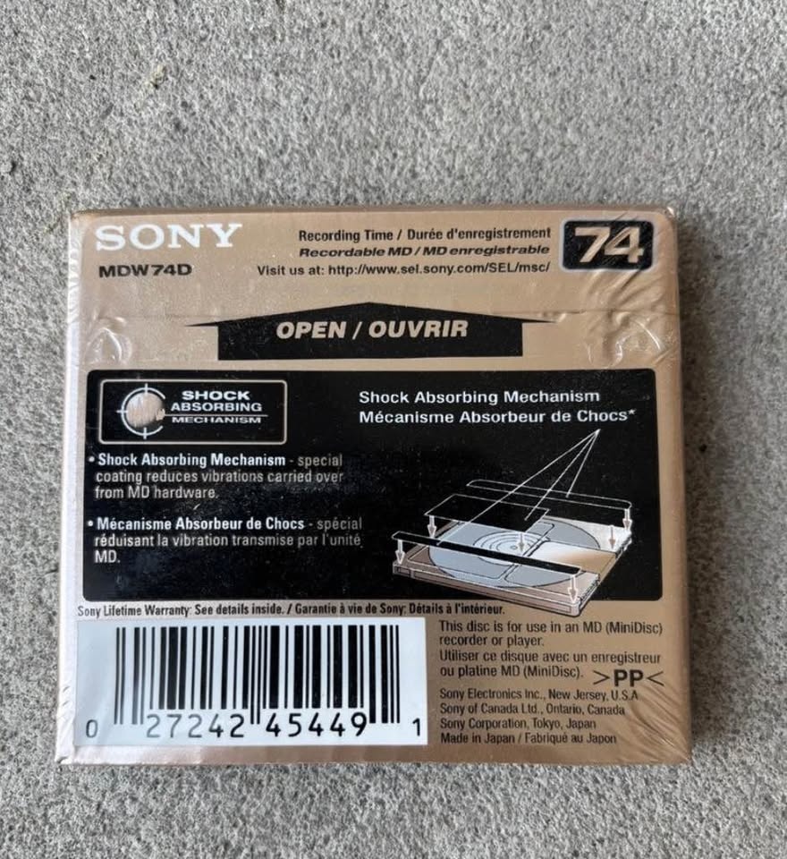 1 / 21 / 2Buy & SellSony Premium Gold MiniDiscs 74 MinSony Premium Gold MiniDiscs 74 Min$25New Sealed - Quantity of 2. See all pictures. Disc sealed with slipcase and labels. Price is for two discs (new).WHERE TO MEETCheck LocationView MapSELLERStefanoConcord281 review0 chats·0 favorites·12 viewsSEND CHAT TO SELLERHi Stefano! I’m interested in your listing.Hi Stefano! I’m interested in your listing.Get the Karrot app to chatSign In to chat