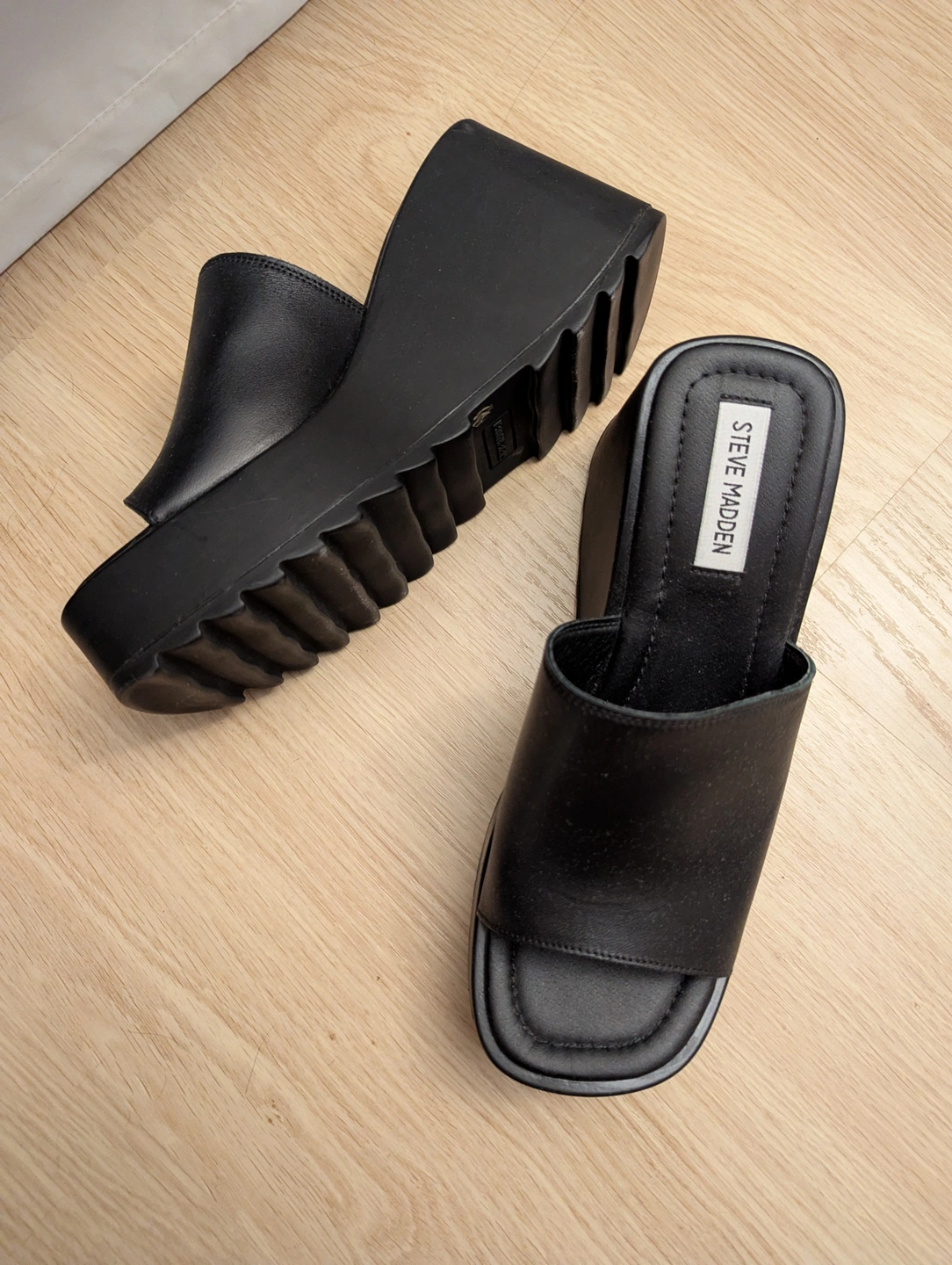 Steve Madden Black Platform Wedge Sandal Heel Pepe30