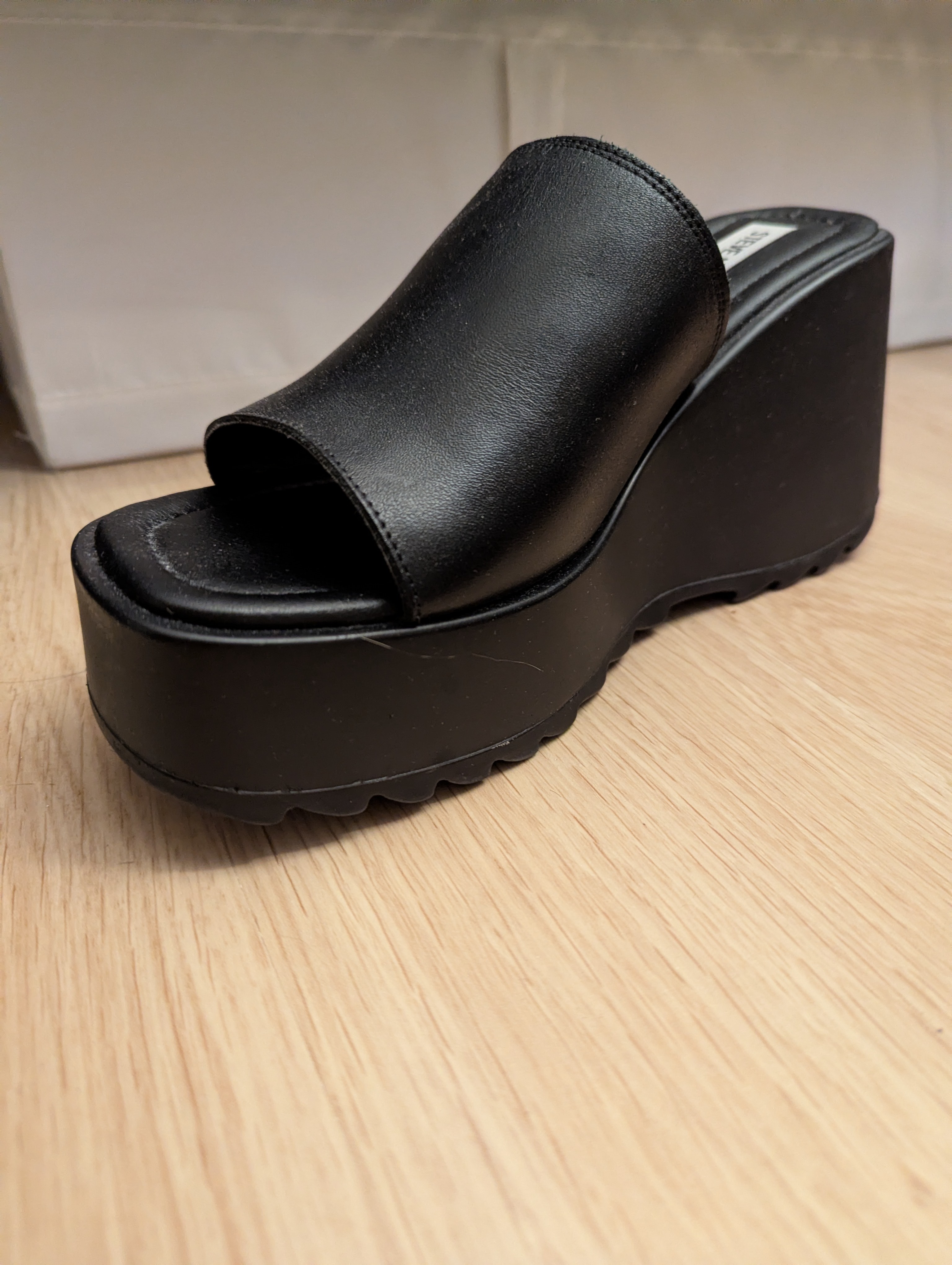 Steve Madden Black Platform Wedge Sandal Heel Pepe30