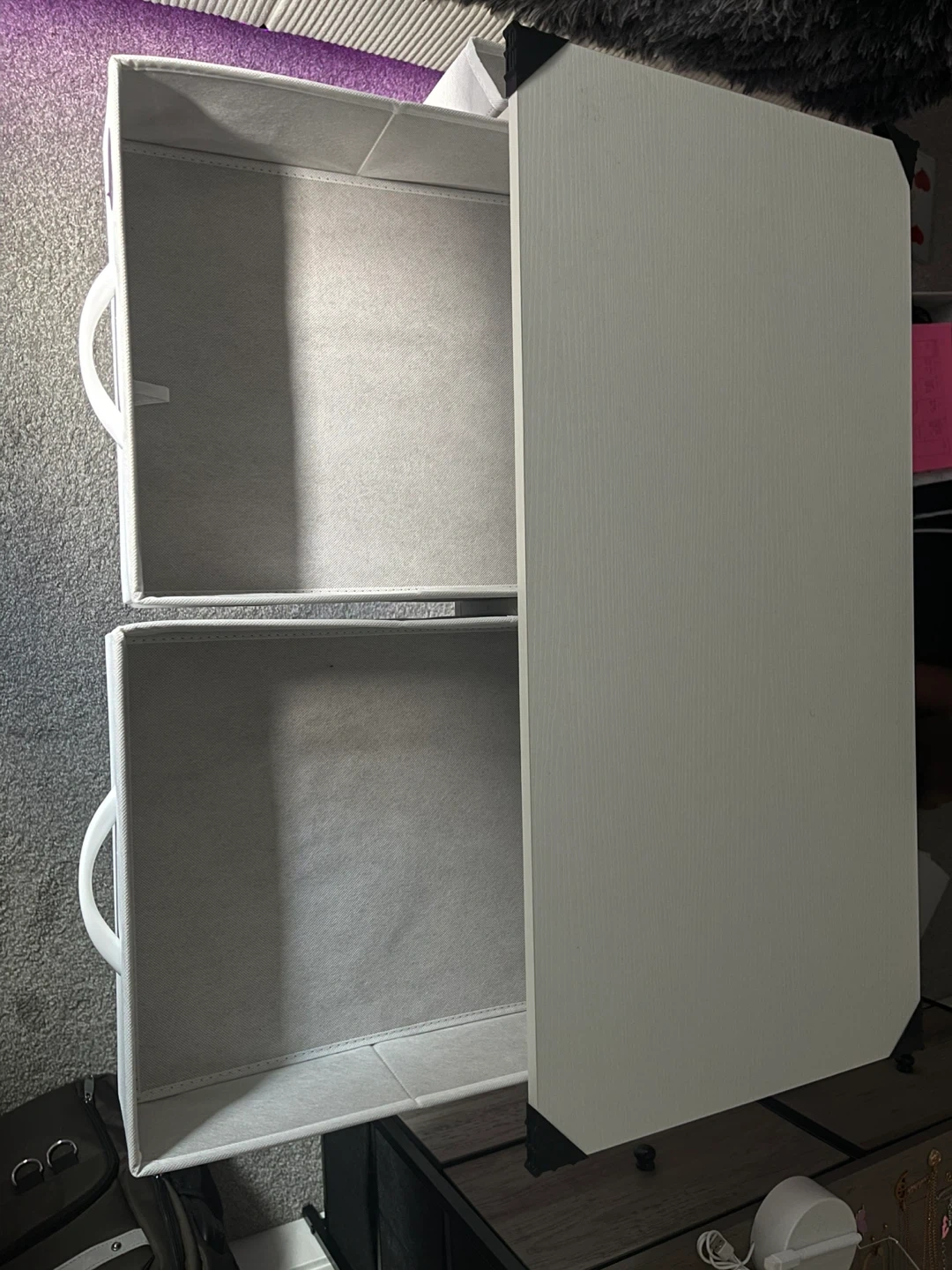 White 2-Drawer Desk with Fabric Bins
