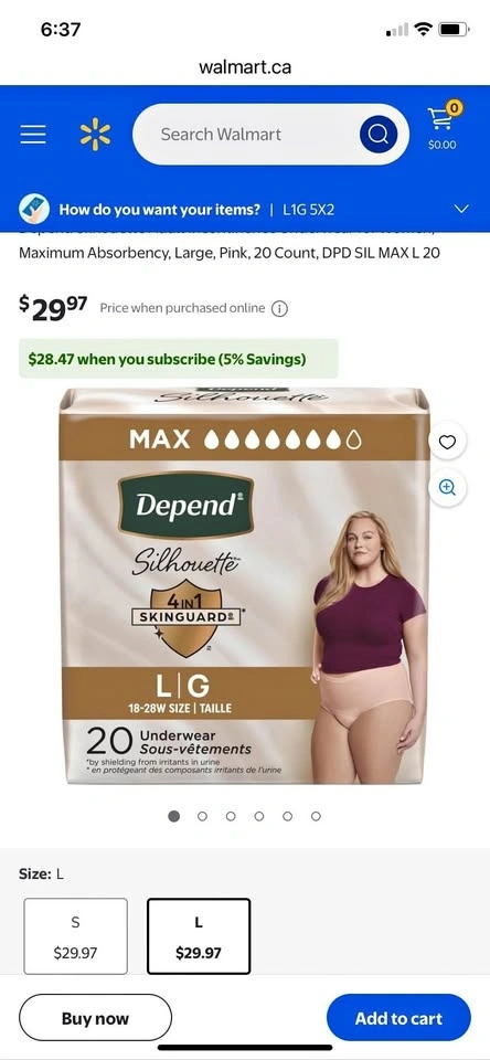 Buy & SellDepend Silhouette Underwear Large 20 countDepend Silhouette Underwear Large 20 count$20New Depend Silhouette underwear, size Large, pack of 20. Still sealed.WHERE TO MEETCostco on Ritson RoadView MapSELLERIrynaO'Neill100 reviews0 chats·1 favorites·8 viewsSEND CHAT TO SELLERHi Iryna! I’m interested in your listing.Hi Iryna! I’m interested in your listing.Get the Karrot app to chatSign In to chat