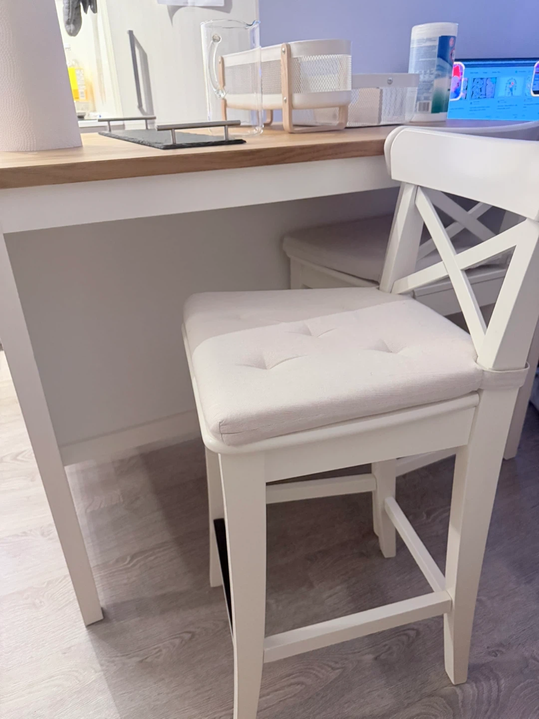 Kitchen Island with two bar stools and cushions. Ample storage space is available with shelves on the side. Great for small kitchens. Measurements are in the images. Pick up location close to Queen W and Spadina