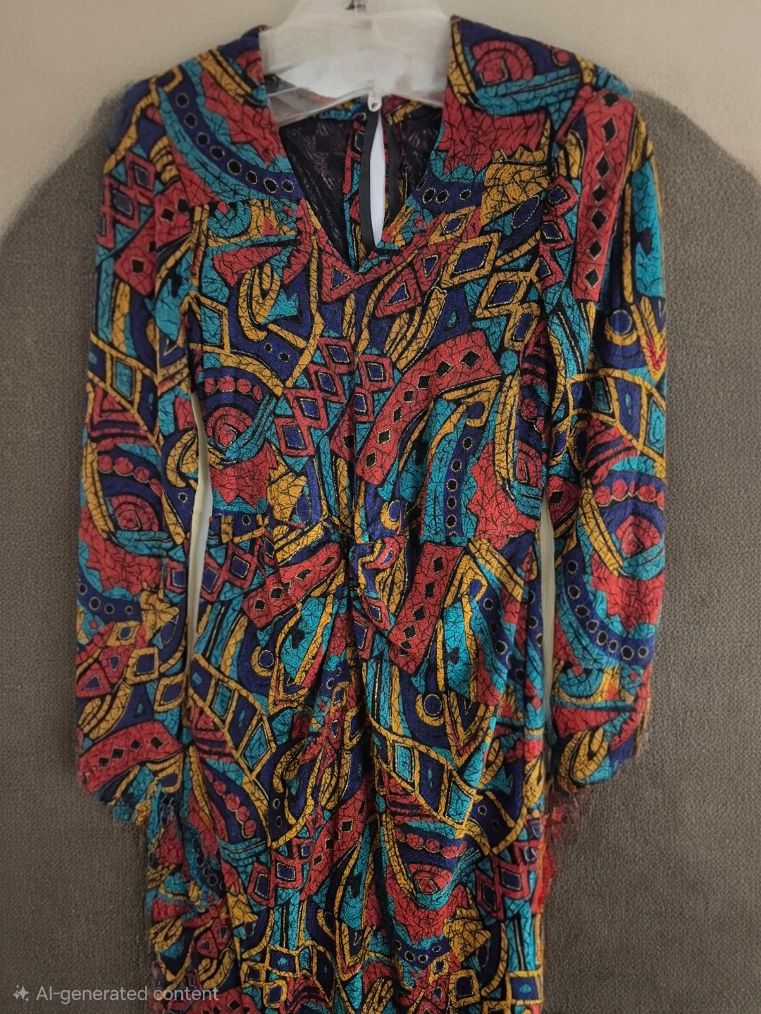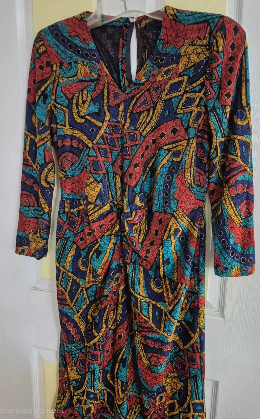 🏆Wool stretch Vintage Abstract Print Long Sleeve Dress size 12p